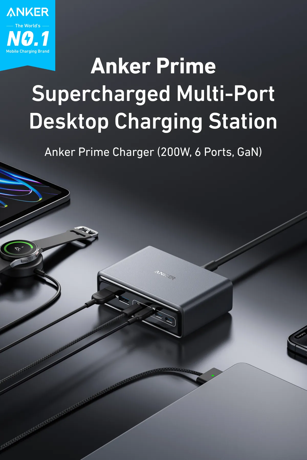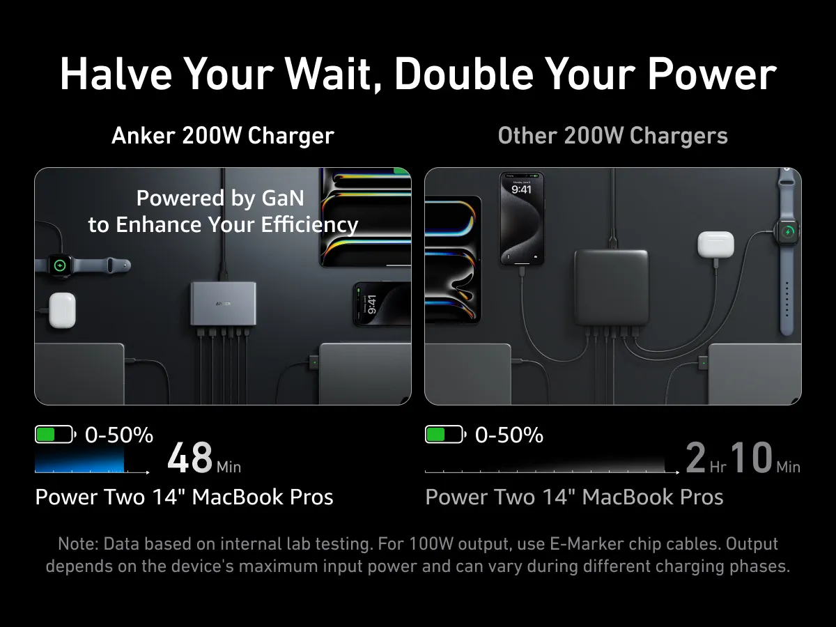 Bên cạnh những tính năng nổi bật trên, Anker Prime 200W còn được thiết kế để khớp hoàn hảo với nhiều dòng sản phẩm đa dạng – từ iPhone 15/14/13, MacBook Air/Pro, iPad Pro, đến Samsung Galaxy S24/S23/S22/S21 và các phụ kiện khác. Bạn không cần phải lo lắng về tính tương thích; chỉ cần kết nối dây cáp phù hợp và bắt đầu sạc.
