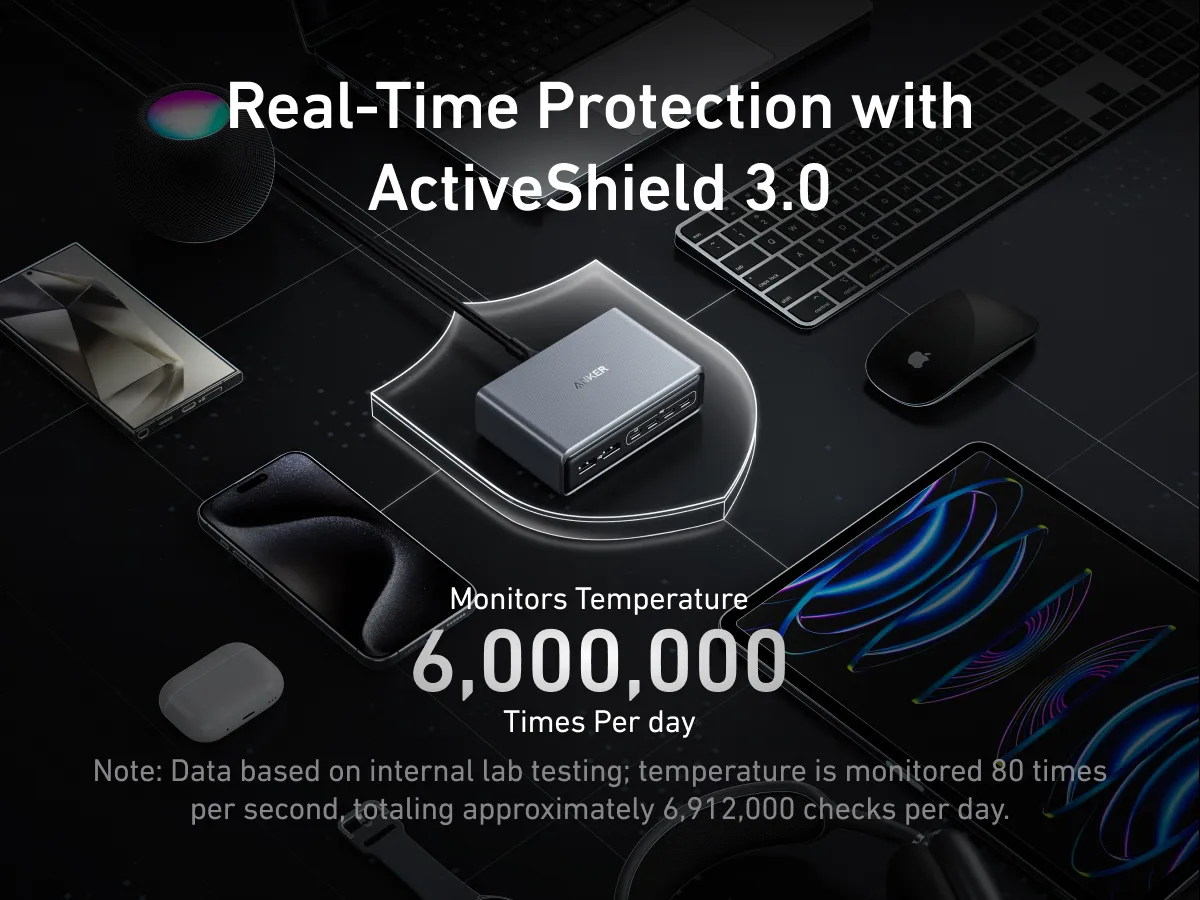 Một trong những ưu điểm lớn nhất của Anker Prime 200W là hệ thống Bảo vệ an toàn, bao gồm: