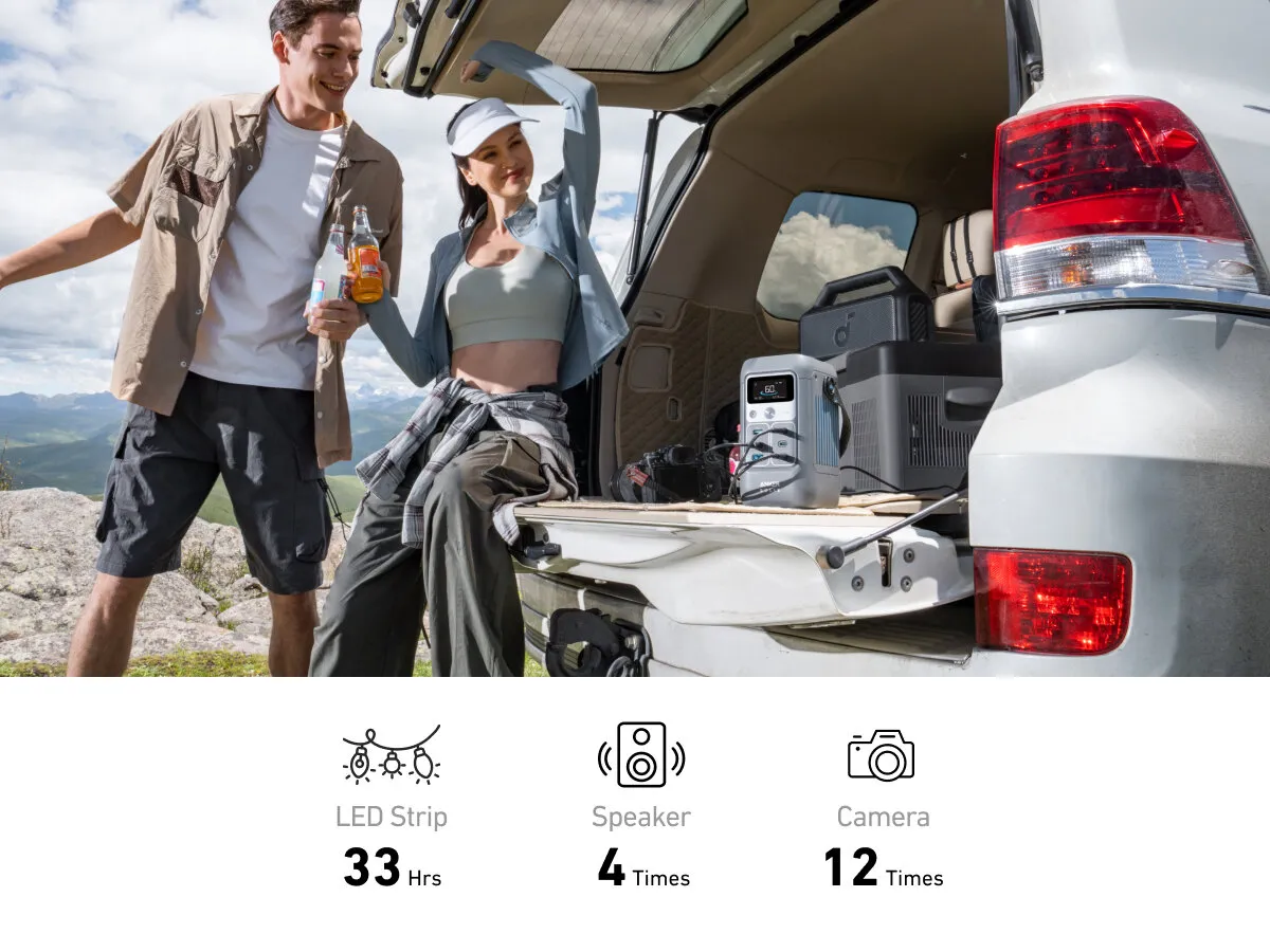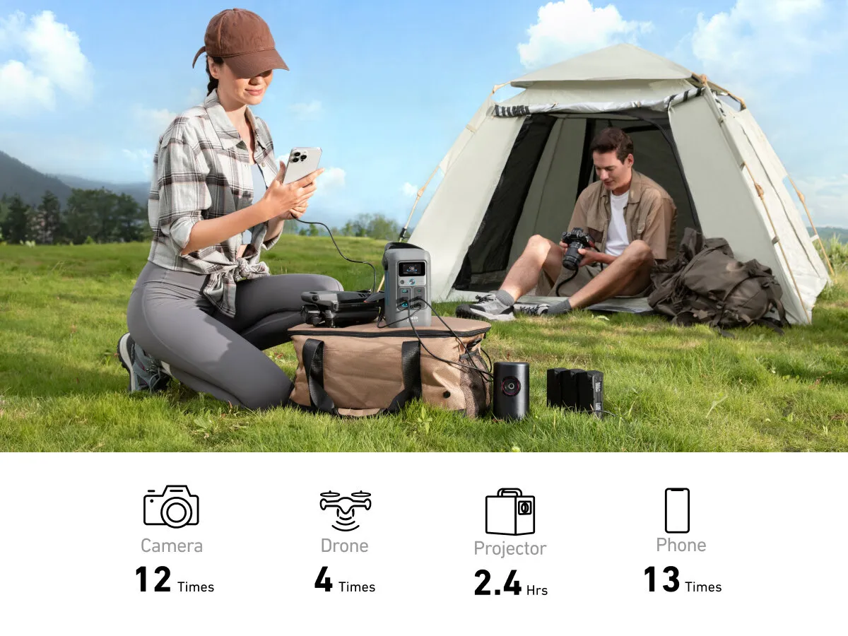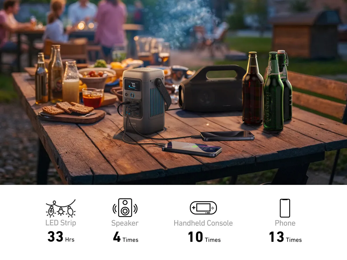 - Công suất “điện năng 200W” giúp giảm thời gian sạc đáng kể. Khi đang dã ngoại hoặc làm việc ngoài trời, bạn không cần phải lo lắng về thời gian chờ.