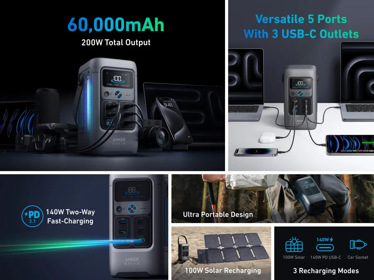 - Điều này làm cho Anker SOLIX C200 trở thành “năng lượng siêu nhẹ 60k mAh” thực sự bền vững khi di chuyển xa khỏi nguồn điện cố định.