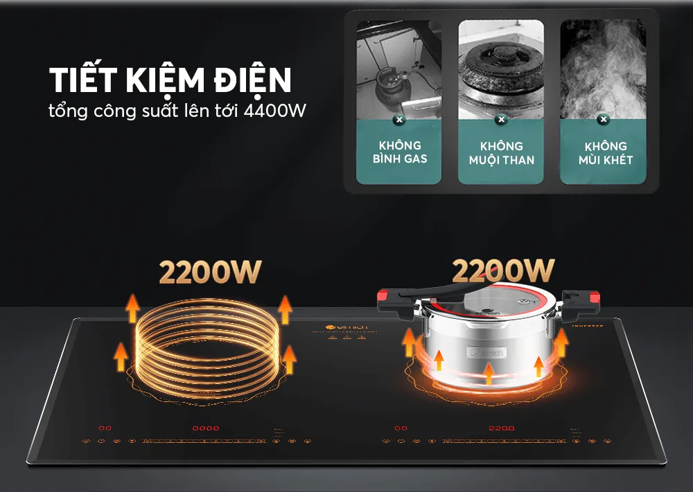 • Công suất bếp bên phải: 2200W (Booster 2500W)
