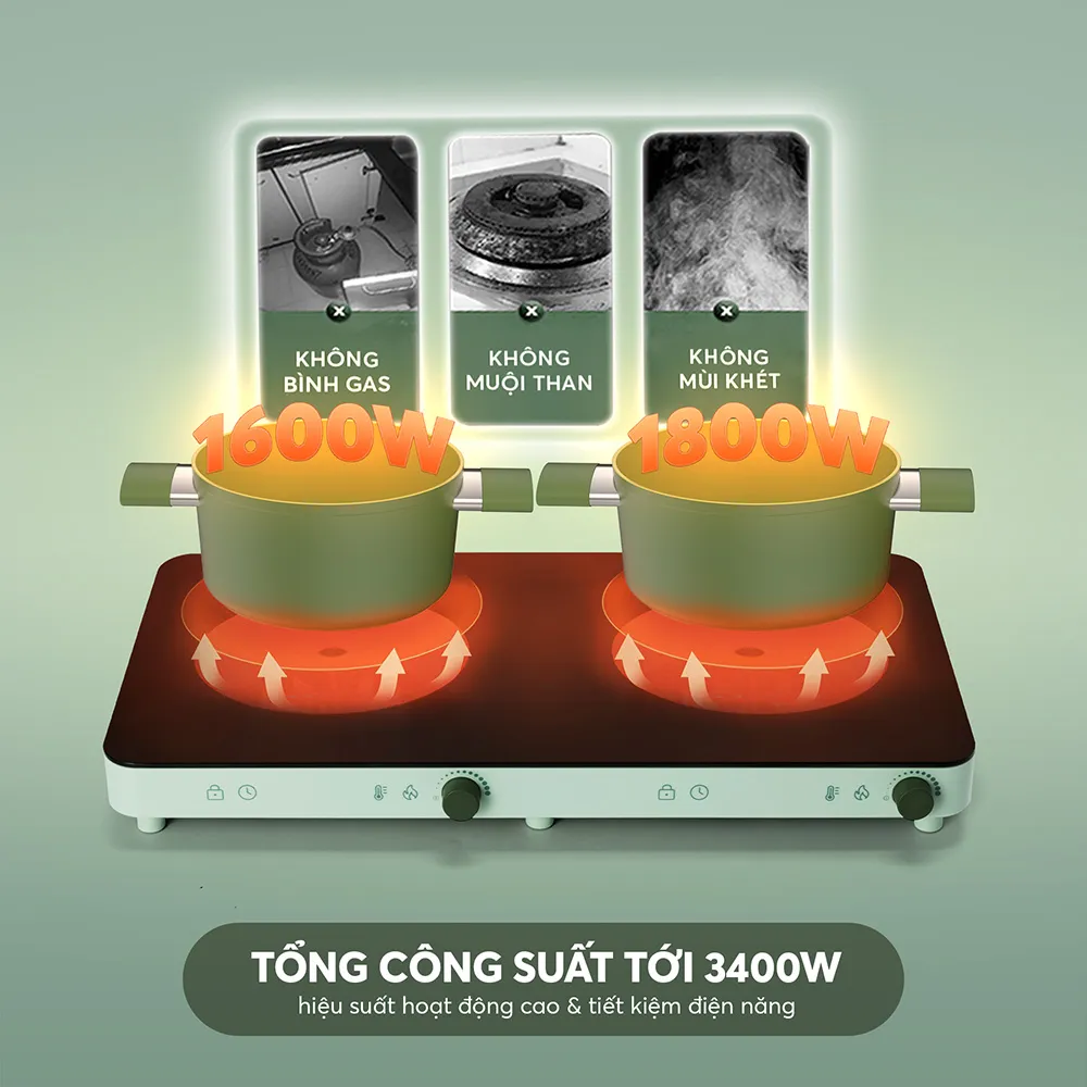 • Chế độ ngắt tự động khi không có nồi – tránh lãng phí điện năng khi quên tắt.