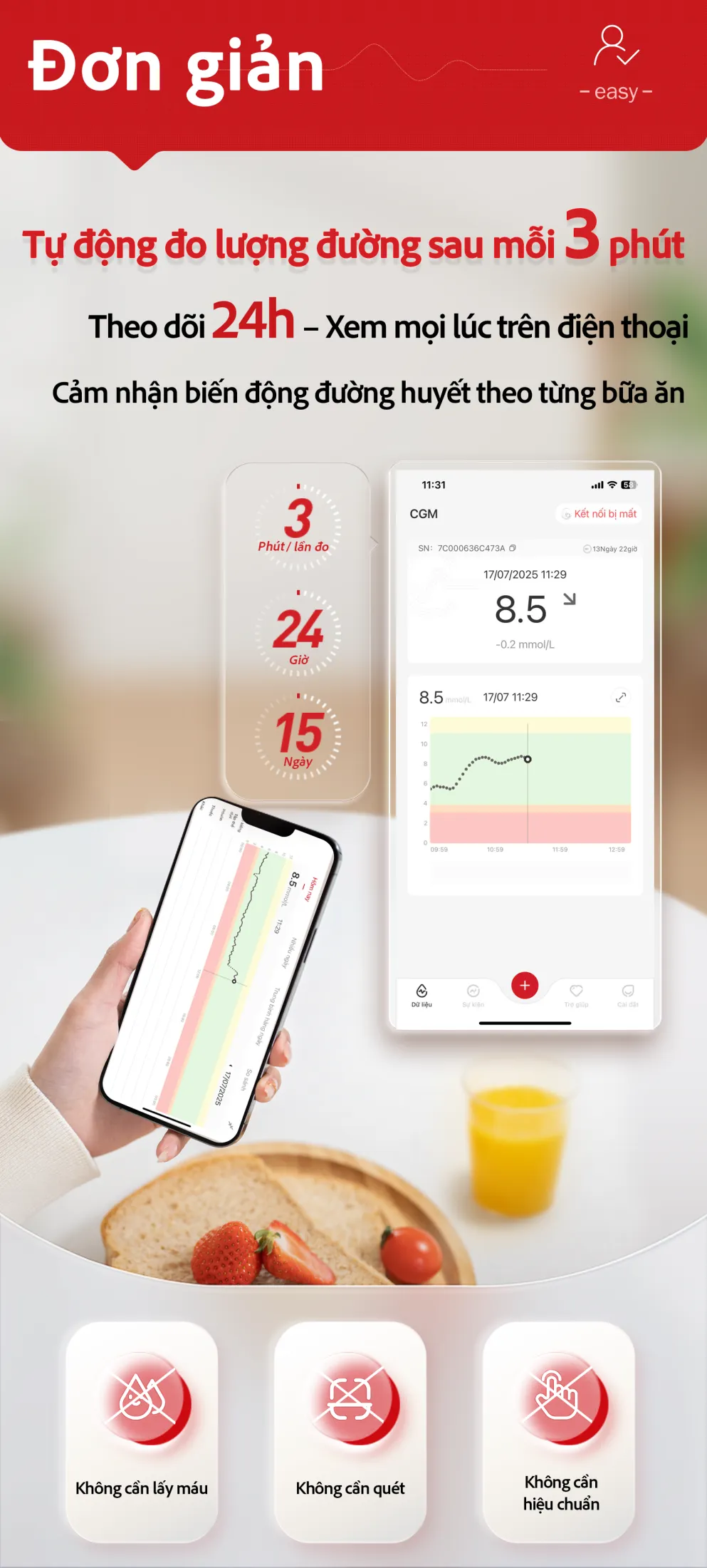 - Tiết kiệm chi phí xét nghiệm: Mỗi lần thay cảm biến tương đương hơn 7.000 lần xét nghiệm máu truyền thống – đây là một lợi ích tài chính lớn cho người dùng.