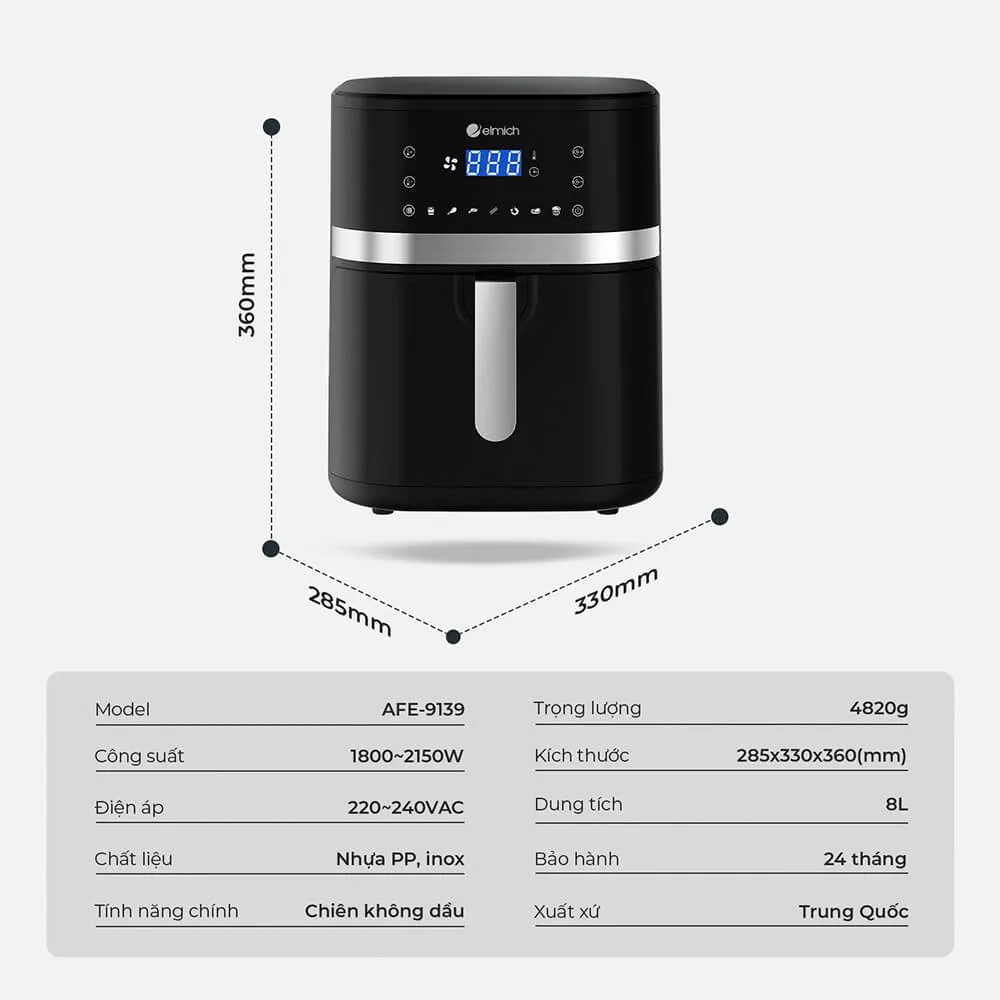 Elmich AFE 9139: Nồi chiên không dầu 8L công suất 2150W – Đánh thức niềm vui nấu ăn trong căn bếp hiện đại của bạn.