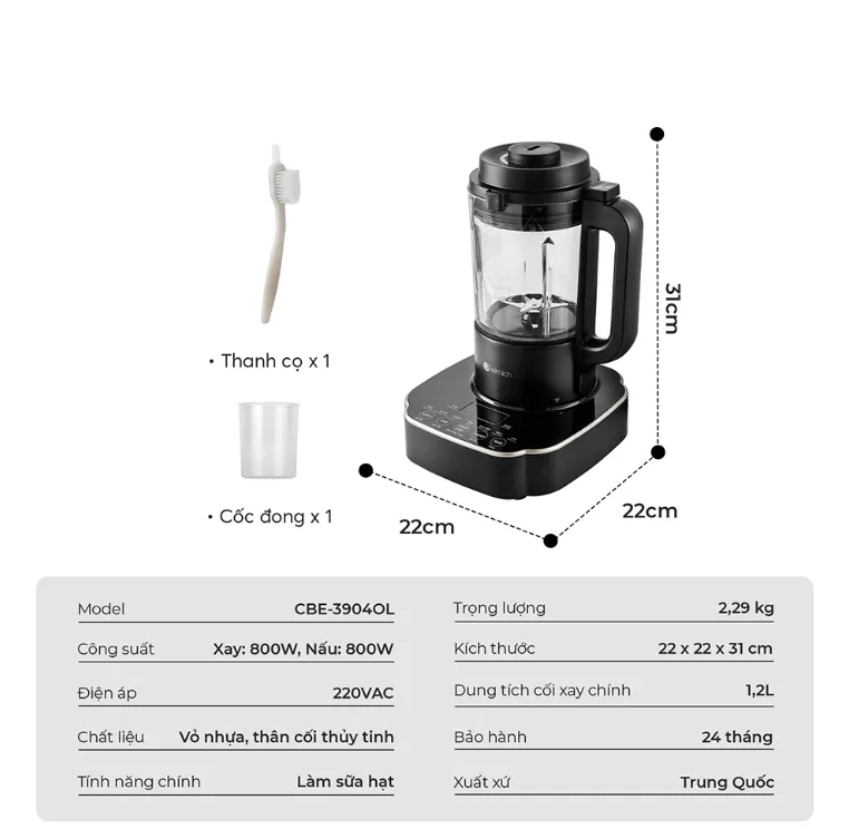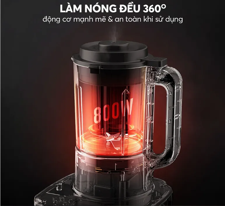 - Công suất 800W cho xay & nấu: Đảm bảo quá trình nghiền hạt nhanh chóng và nhiệt độ đều khi nấu ăn. Bạn có thể tự tin chế biến các món như sữa hạnh nhân, bột gạo lúa mạch, hoặc thậm chí là nấu canh, súp trong vòng 25 phút.