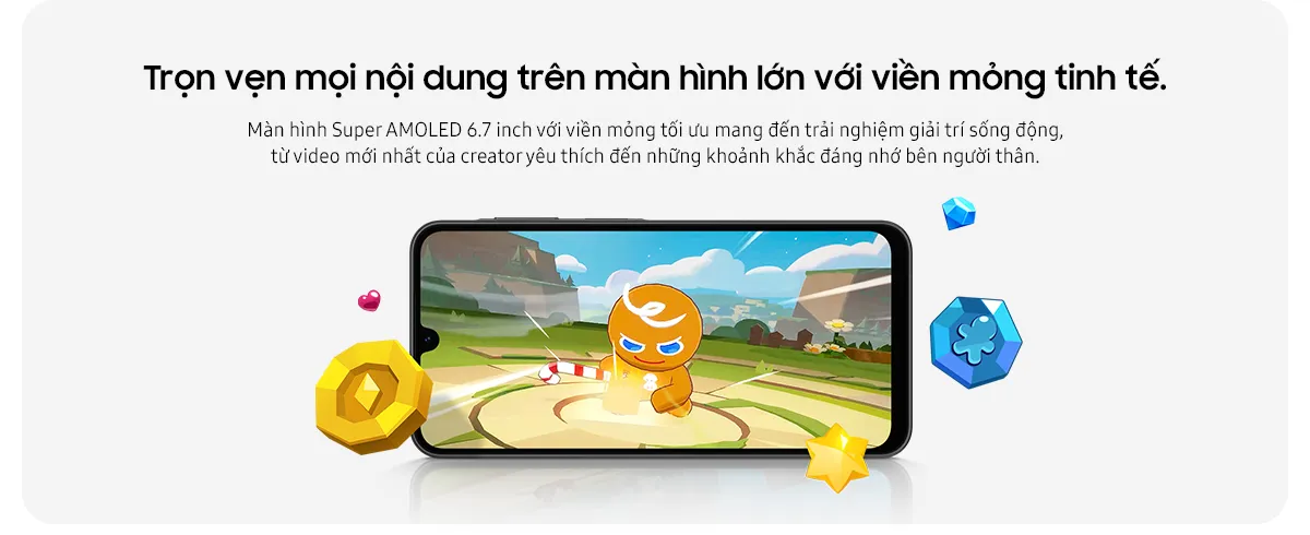 Về màn hình, Samsung đã chọn công nghệ Super AMOLED với độ phân giải 1080 x 2340 (FHD+). Độ sáng tối đa lên tới 800 nits, thích hợp cho cả ánh sáng ngoài trời và trong nhà. Tần số quét 120 Hz làm cho trải nghiệm xem video, lướt web trở nên mượt mà hơn, đặc biệt khi so sánh với các mẫu trung cấp khác.