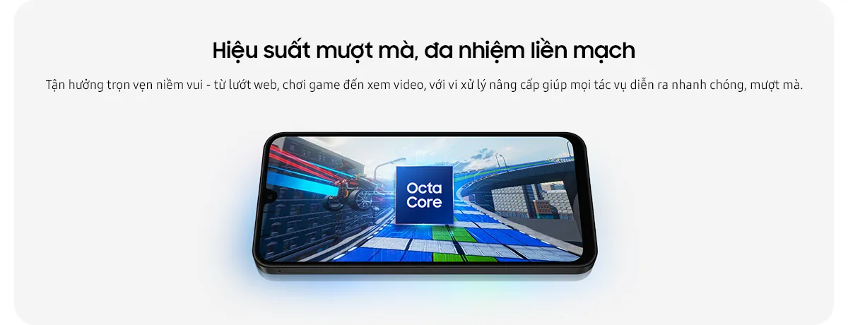 Bộ xử lý trung tâm của Galaxy A26 5G là chip Exynos 1380 (Quartz) với cấu trúc Octa-Core: 2 nhân 2.4 GHz và 6 nhân 2 GHz, được tích hợp GPU Mali‑G68. Điều này đồng nghĩa với khả năng xử lý đa nhiệm mượt mà, chơi game nhẹ nhàng và thực hiện các tác vụ nặng như chỉnh sửa video hoặc làm việc văn phòng một cách liền mạch.