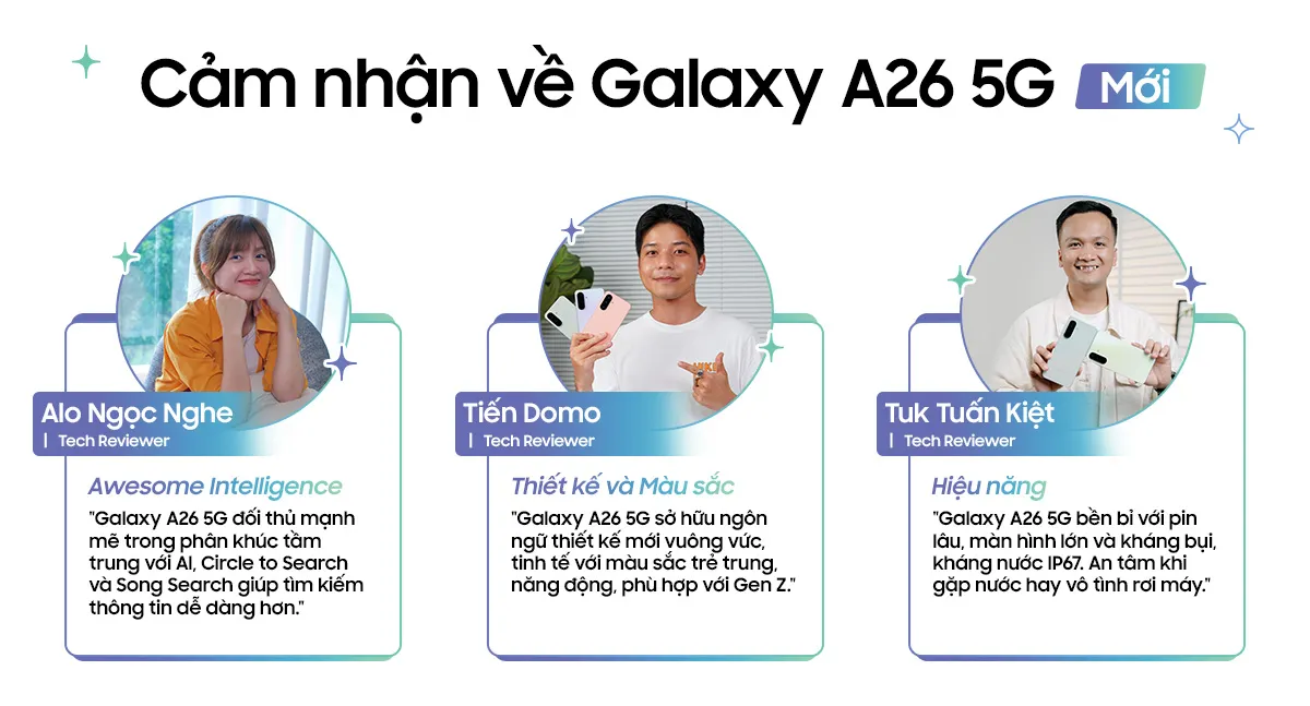 Với mức giá hợp lý và nhiều tính năng ưu việt, Galaxy A26 5G thực sự là một lựa chọn thông minh cho người dùng muốn sở hữu công nghệ hiện đại mà không phải trả quá nhiều tiền. Nếu bạn đang tìm kiếm một chiếc phone với mặt lưng kính Gorilla, camera chụp đêm và pin mạnh mẽ, đây chính là “điểm đến” của bạn.