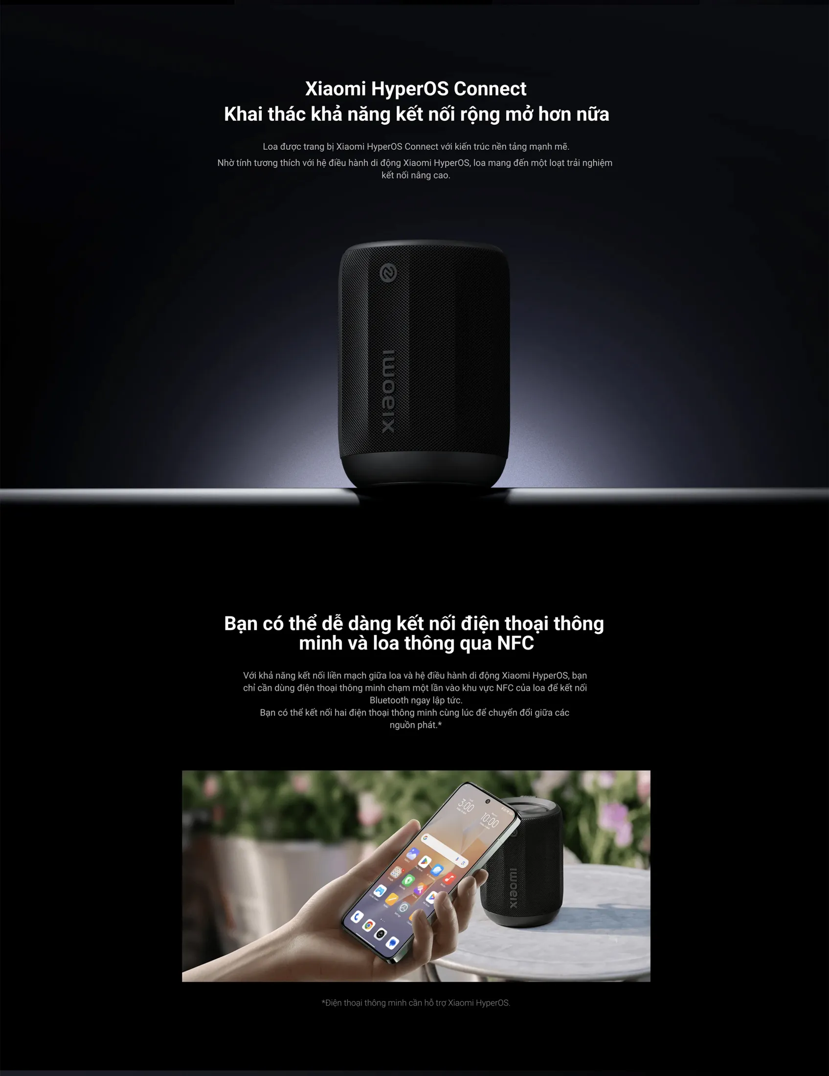 Tích hợp NFC cho phép kết nối Bluetooth chỉ bằng cách chạm một lần. Khi sử dụng cùng với điện thoại Xiaomi chạy hệ điều hành Xiaomi HyperOS, bạn có thể chuyển đổi nguồn phát giữa hai thiết bị một cách nhanh chóng và liền mạch.