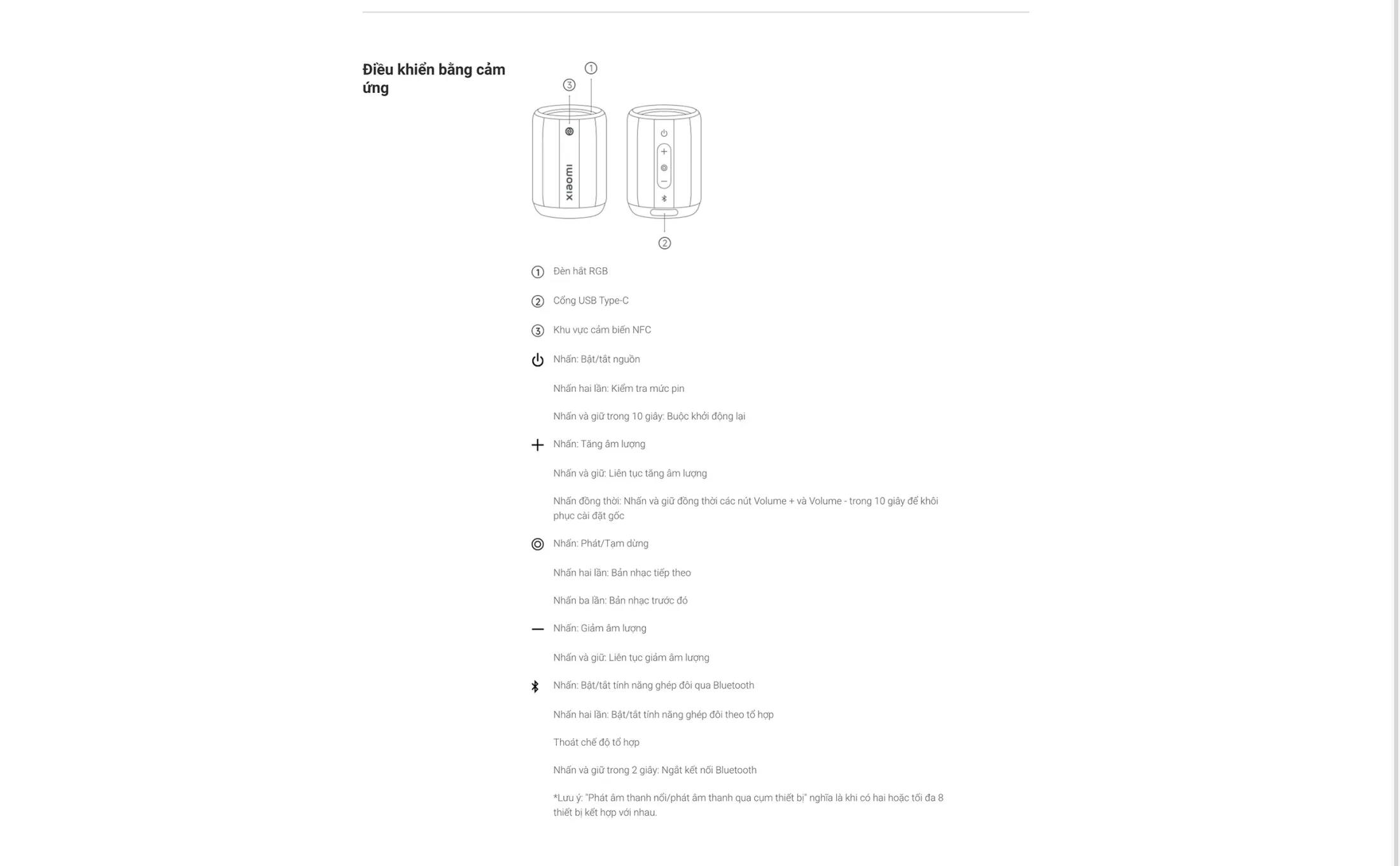- Xử lý Bluetooth: Nhấn hai lần để bật/tắt ghép đôi, nhấn 2 giây để ngắt kết nối.