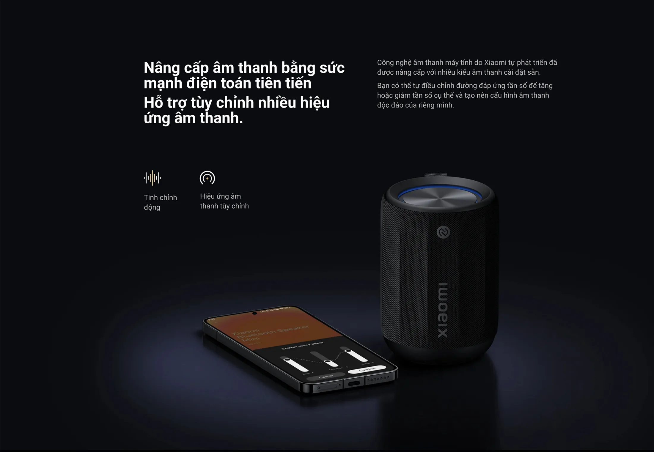 - Tùy chỉnh âm thanh thông qua ứng dụng Mi Home/Xiaomi Home: điều chỉnh độ nhạy tần số, chọn từ các preset hoặc tự tạo cấu hình riêng.