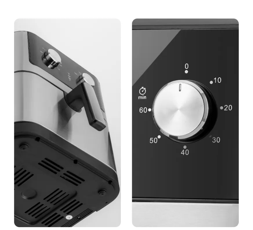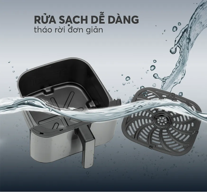 - Độ an toàn chuẩn Châu Âu: Nồi chiên được trang bị công tắc an toàn khay nướng – khi rút khay ra ngoài, máy sẽ tự động ngừng hoạt động ngay lập tức, tránh nguy cơ cháy nổ.