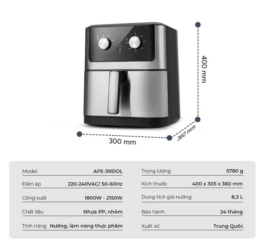 Để trải nghiệm những món ăn ngon lành và an toàn, bạn có thể mua Nồi chiên không dầu 8.3L tại đây. Sản phẩm sẽ giúp bạn nấu ăn nhanh chóng, tiết kiệm năng lượng và giảm thiểu mỡ thừa trong thực đơn hàng ngày.