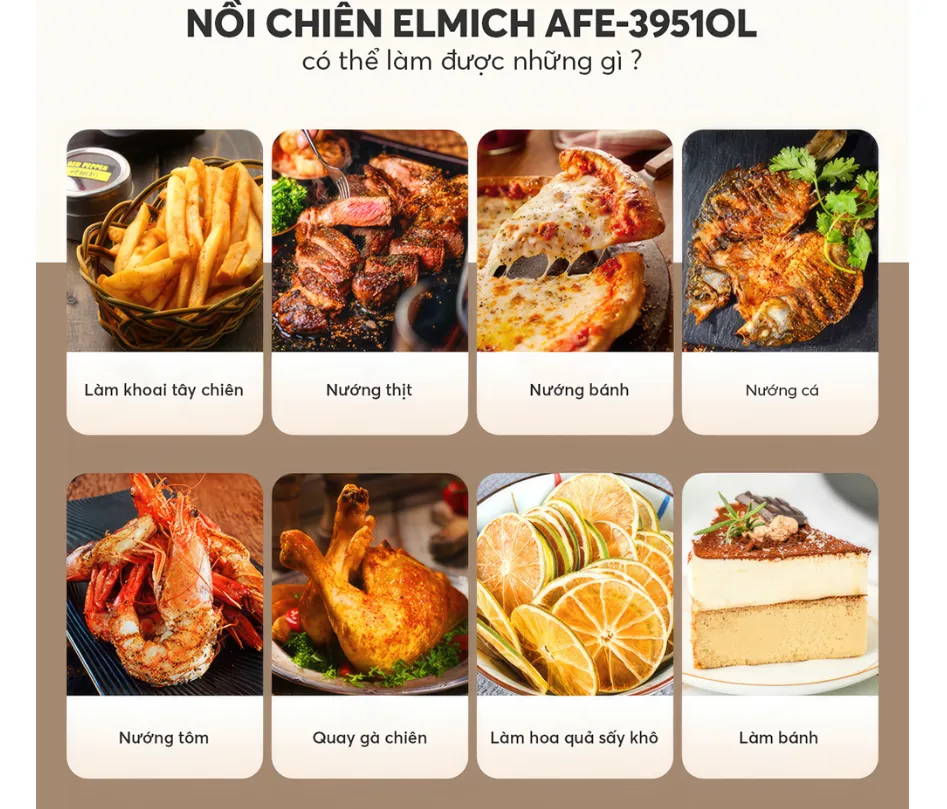 Đồ ăn có thể chế biến với Nồi chiên không dầu Elmich AFE-3951OL