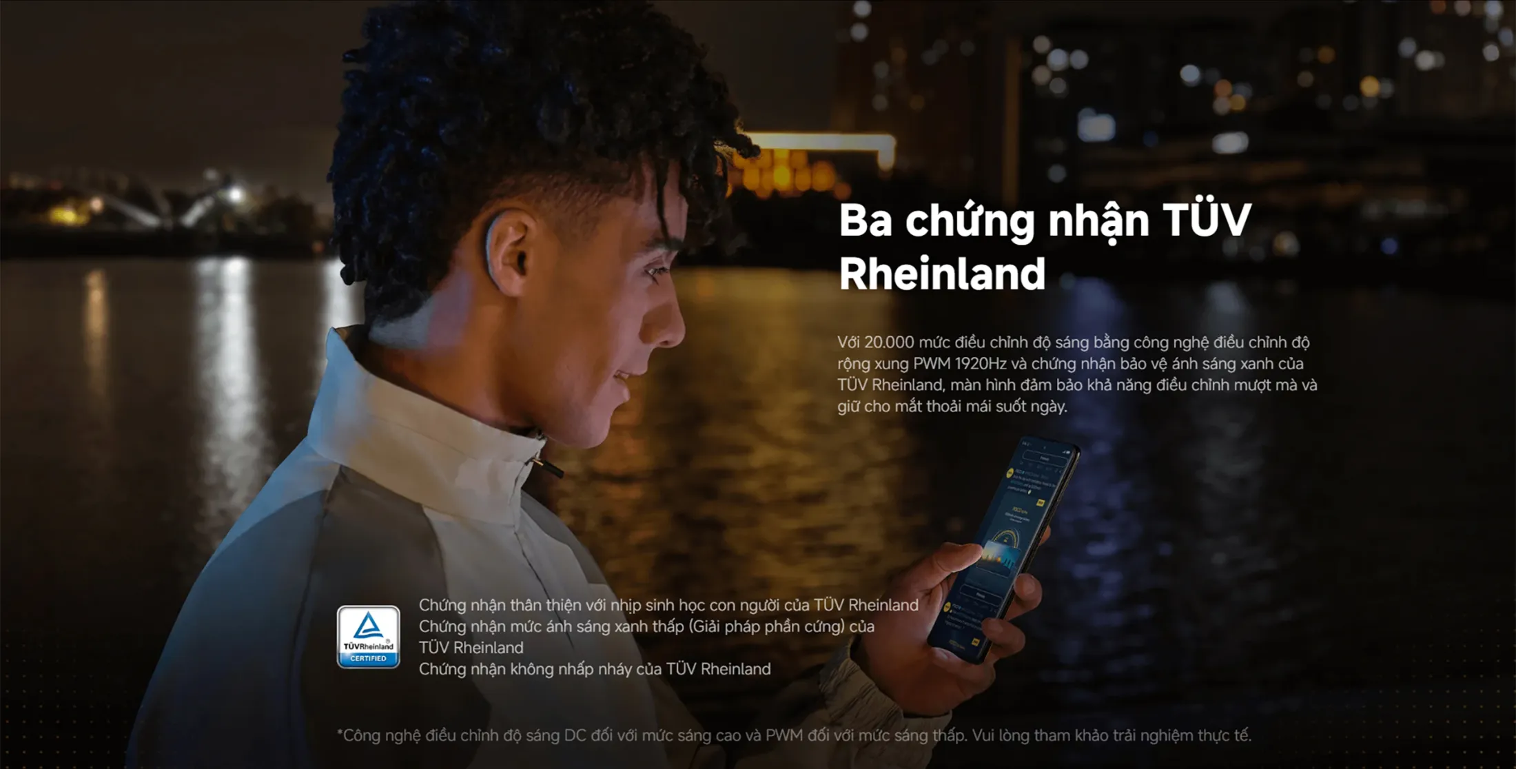 - Chứng nhận TÜV Rheinland: giảm ánh sáng xanh, bảo vệ thị lực trong thời gian dài.