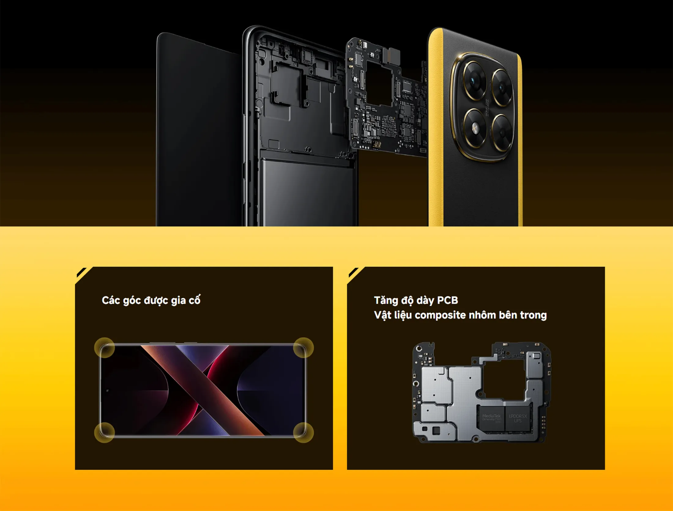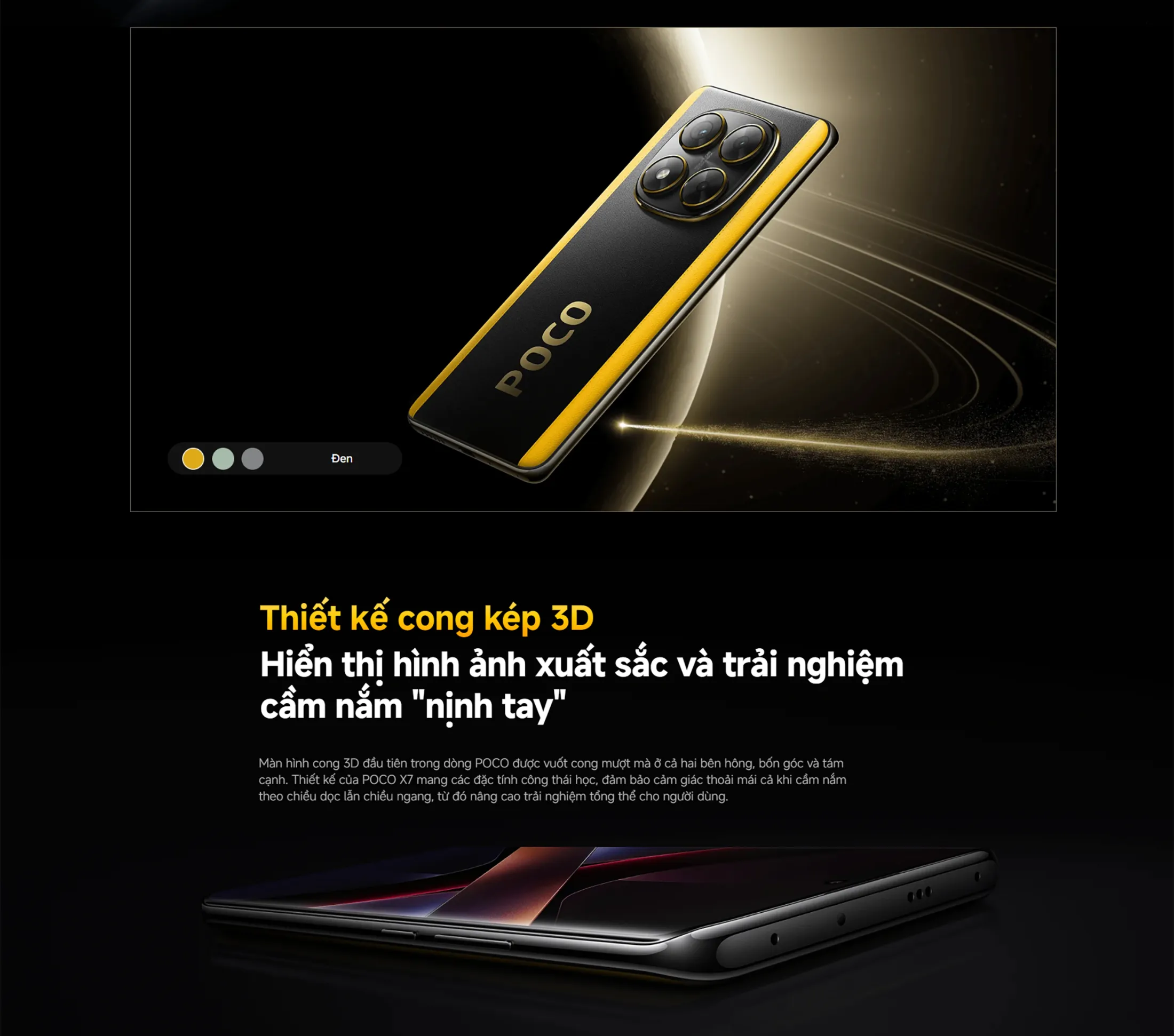 Màn hình cong 3D đầu tiên của POCO X7 mang lại cảm giác mượt mà khi vuốt, đồng thời làm tăng độ thẩm mỹ cho thiết bị. Cấu trúc nhôm composite và tấm than chì tản nhiệt lớn giúp giữ nhiệt ổn định ngay cả trong quá trình chơi game nặng.