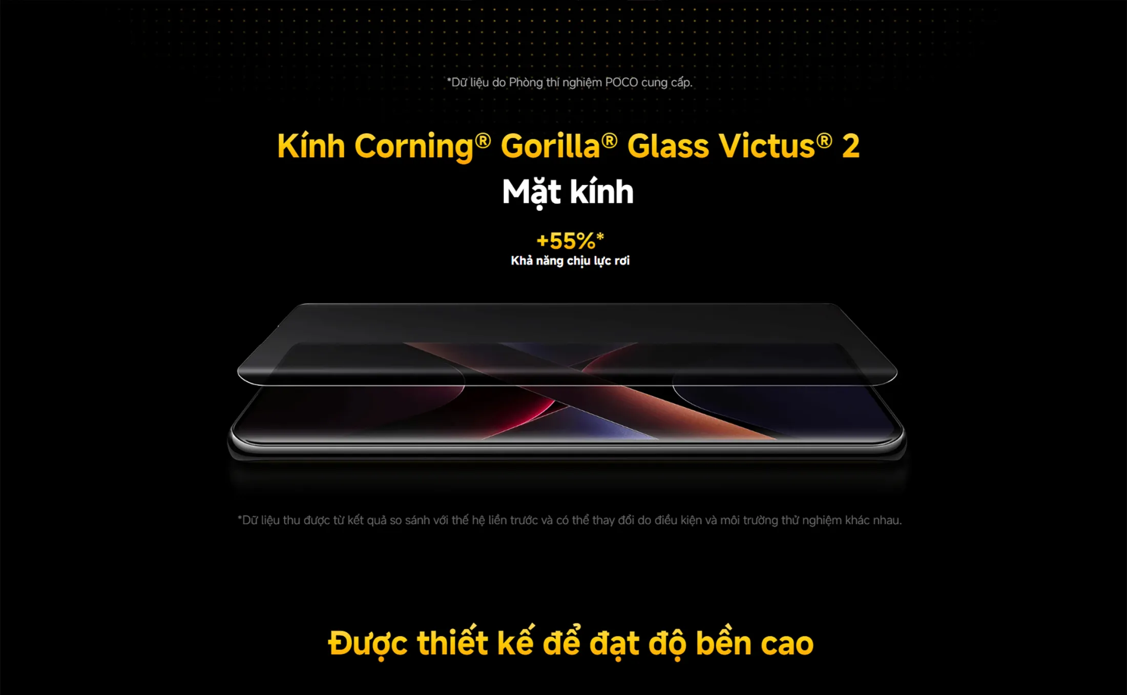 - Kính Corning® Gorilla® Glass Victus® 2: chịu va đập tốt, chống trầy xước.