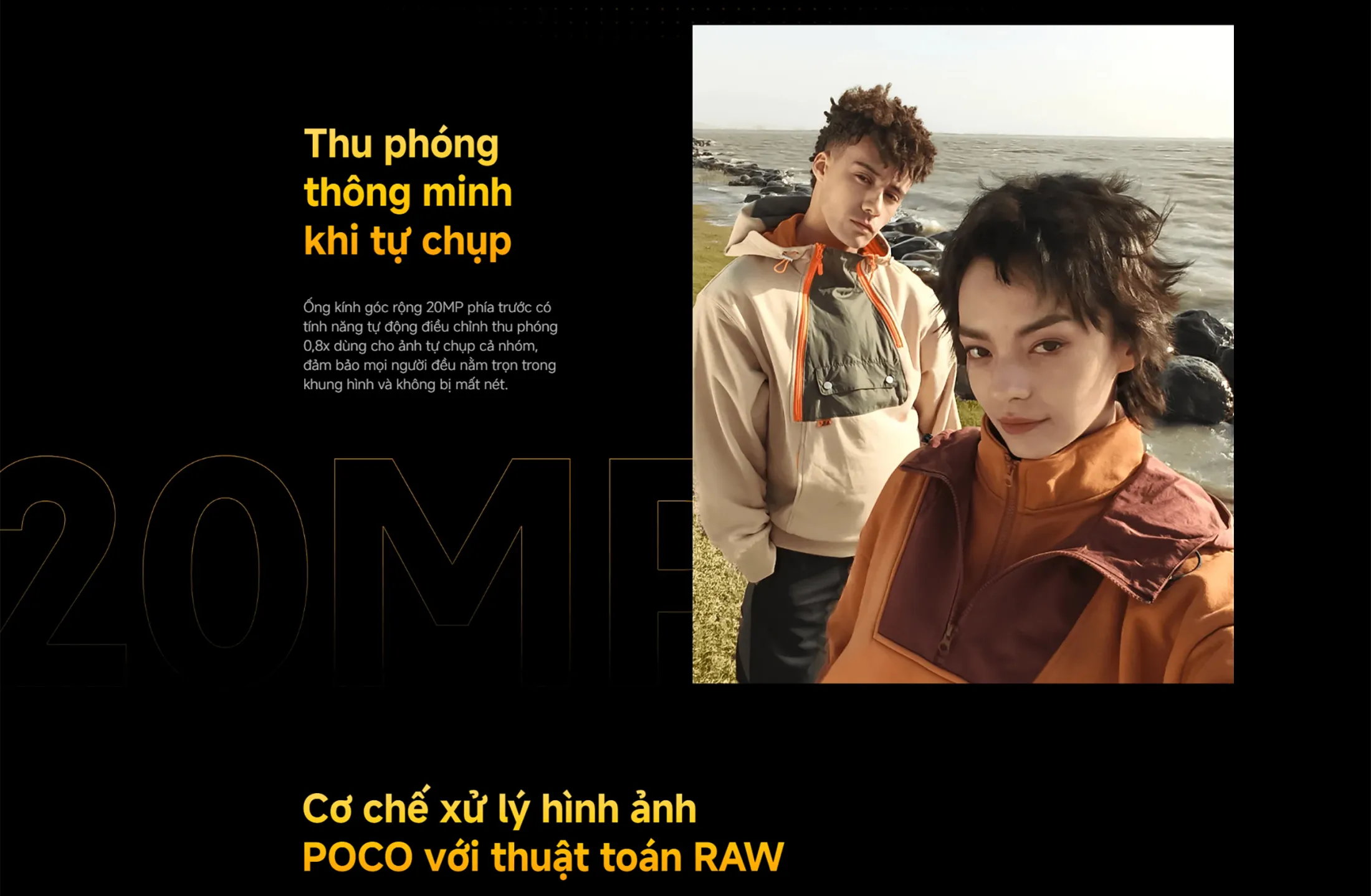 Bên cạnh camera chính, POCO X7 còn có camera trước 20MP, cảm biến cận cảnh 2MP, giúp người dùng chụp selfie chất lượng cao và thực hiện các ứng dụng nhận diện khuôn mặt.