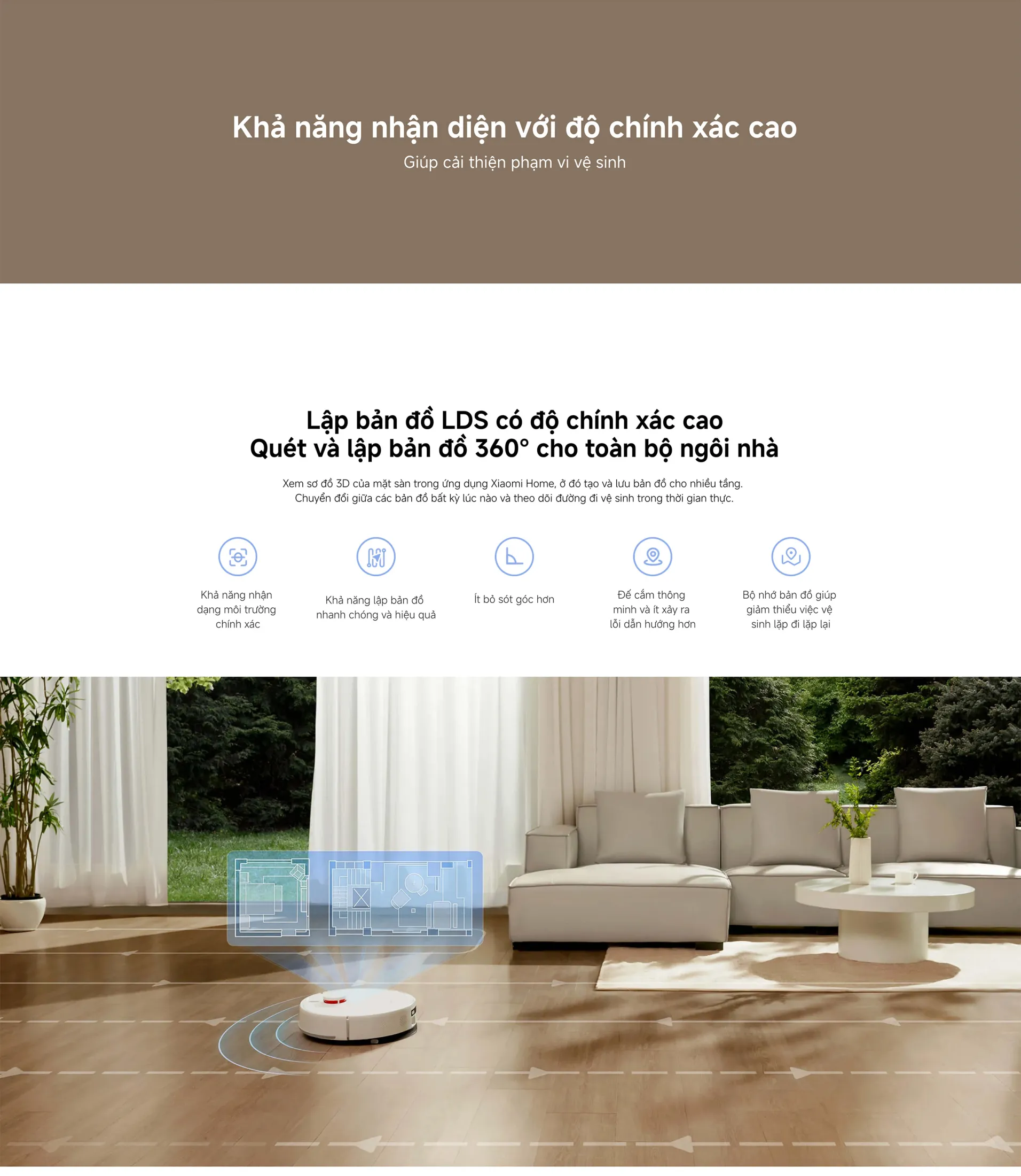 Xiaomi H40 được trang bị cảm biến LDS (Laser Detection and Sensing), cho phép lập bản đồ 3D của ngôi nhà một cách chính xác. Bạn có thể: