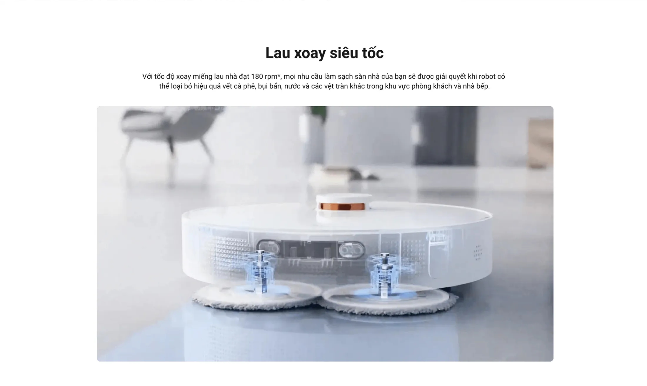 - Tự động lau nhà: Miếng lau tự động nâng và sấy nóng giúp bạn tiết kiệm thời gian dọn dẹp.