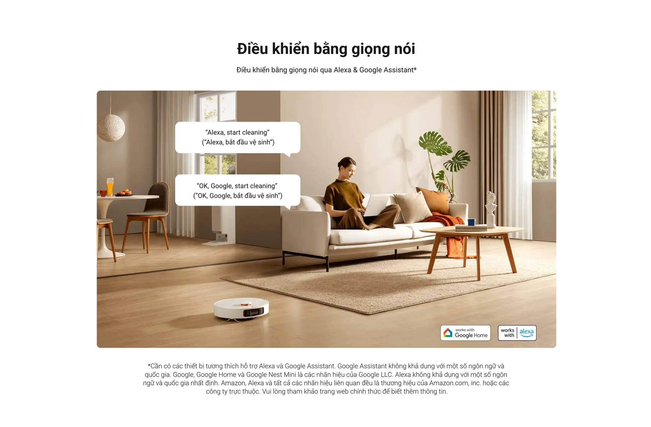 - Điều khiển từ xa thông minh: Kết nối với ứng dụng Mi Home/Xiaomi Home, bạn có thể điều khiển robot bất cứ lúc nào, kể cả khi không ở nhà.