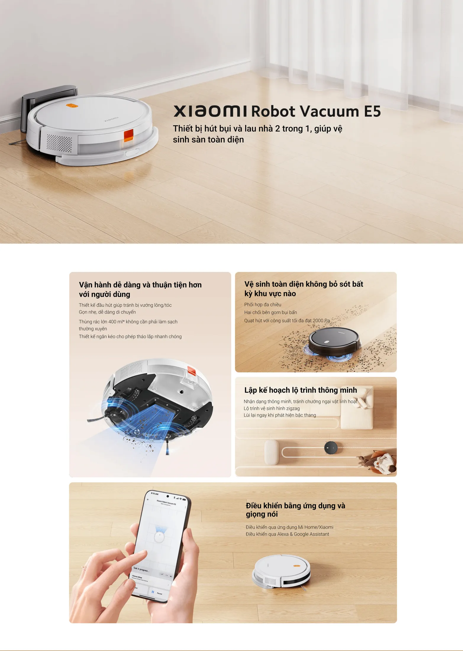 Robot Xiaomi E5: Hút & Lau 2 trong 1, Vệ sinh hoàn hảo