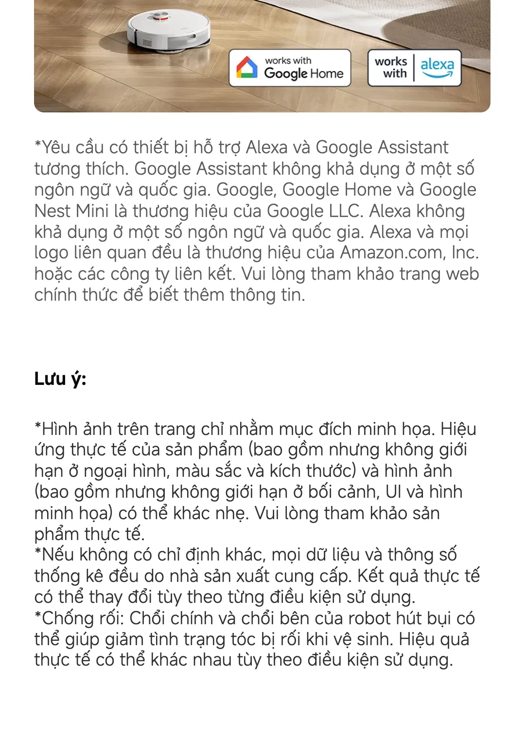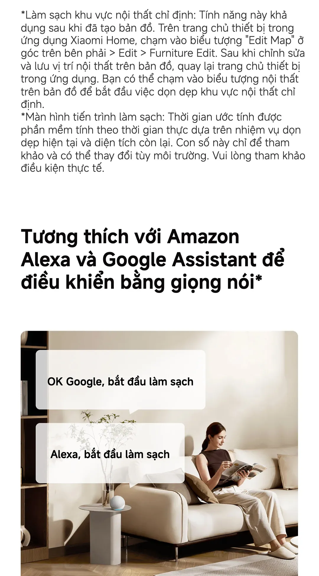 Bên cạnh đó, Robot Xiaomi S40 Pro còn tương thích với Amazon Alexa và Google Assistant. Bạn chỉ cần nói “OK Google, bắt đầu làm sạch” hoặc “Alexa, khởi động robot” để robot thực hiện công việc ngay lập tức.