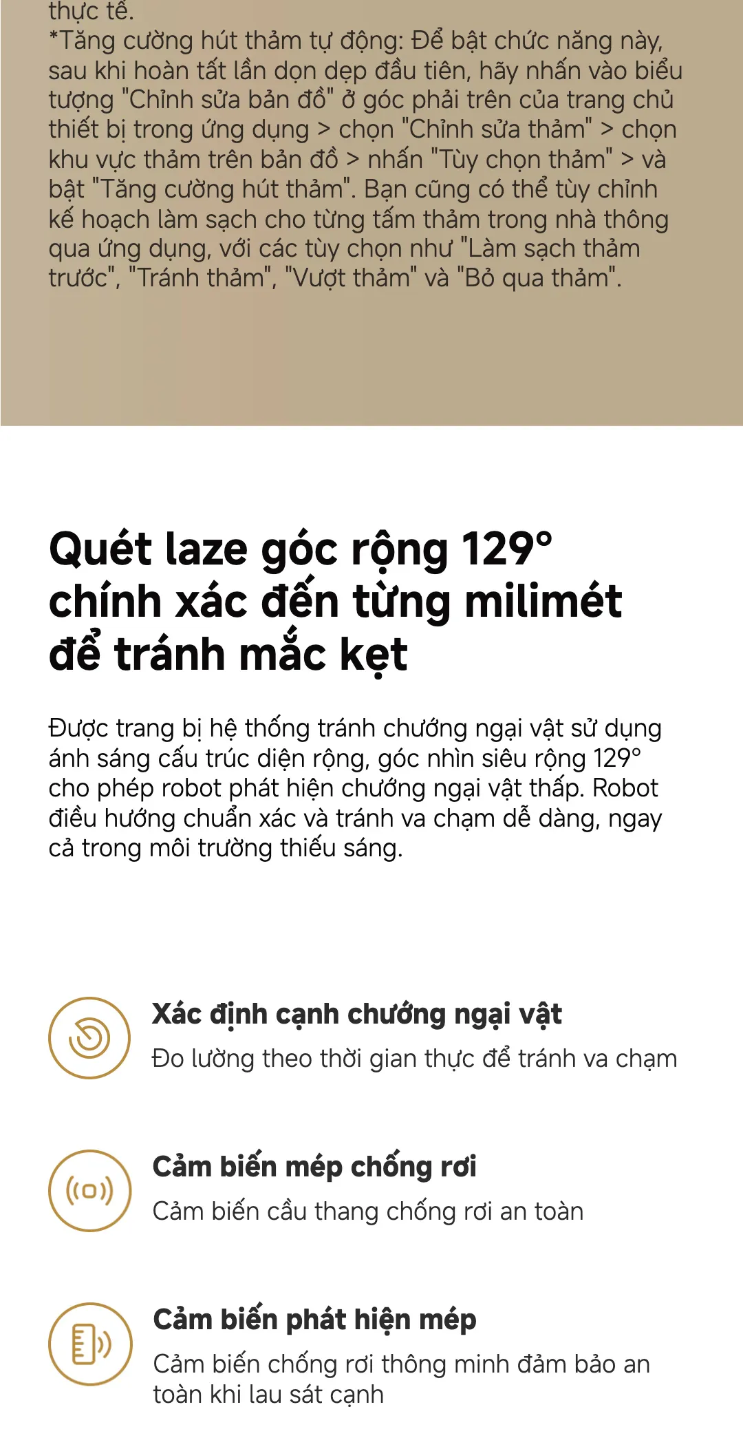 Đèn chiếu cấu trúc 129° là công nghệ quan trọng giúp Robot Xiaomi S40 Pro có thể nhận diện môi trường xung quanh một cách toàn diện. Các lợi ích chính bao gồm: