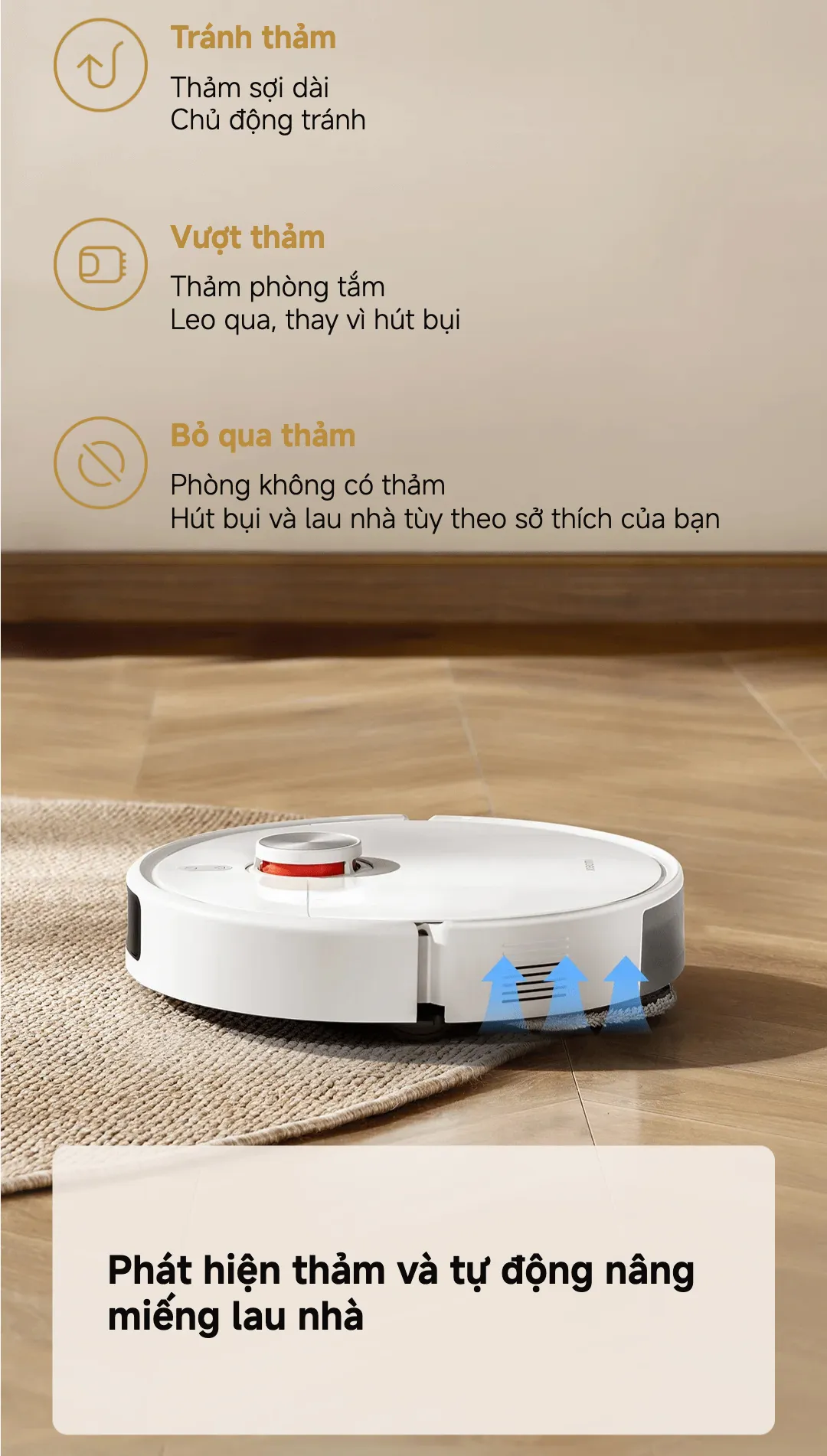 - Chọn chế độ “Tránh thảm” cho những thảm dày hơn 5mm, giúp tránh tình trạng bị kẹt.