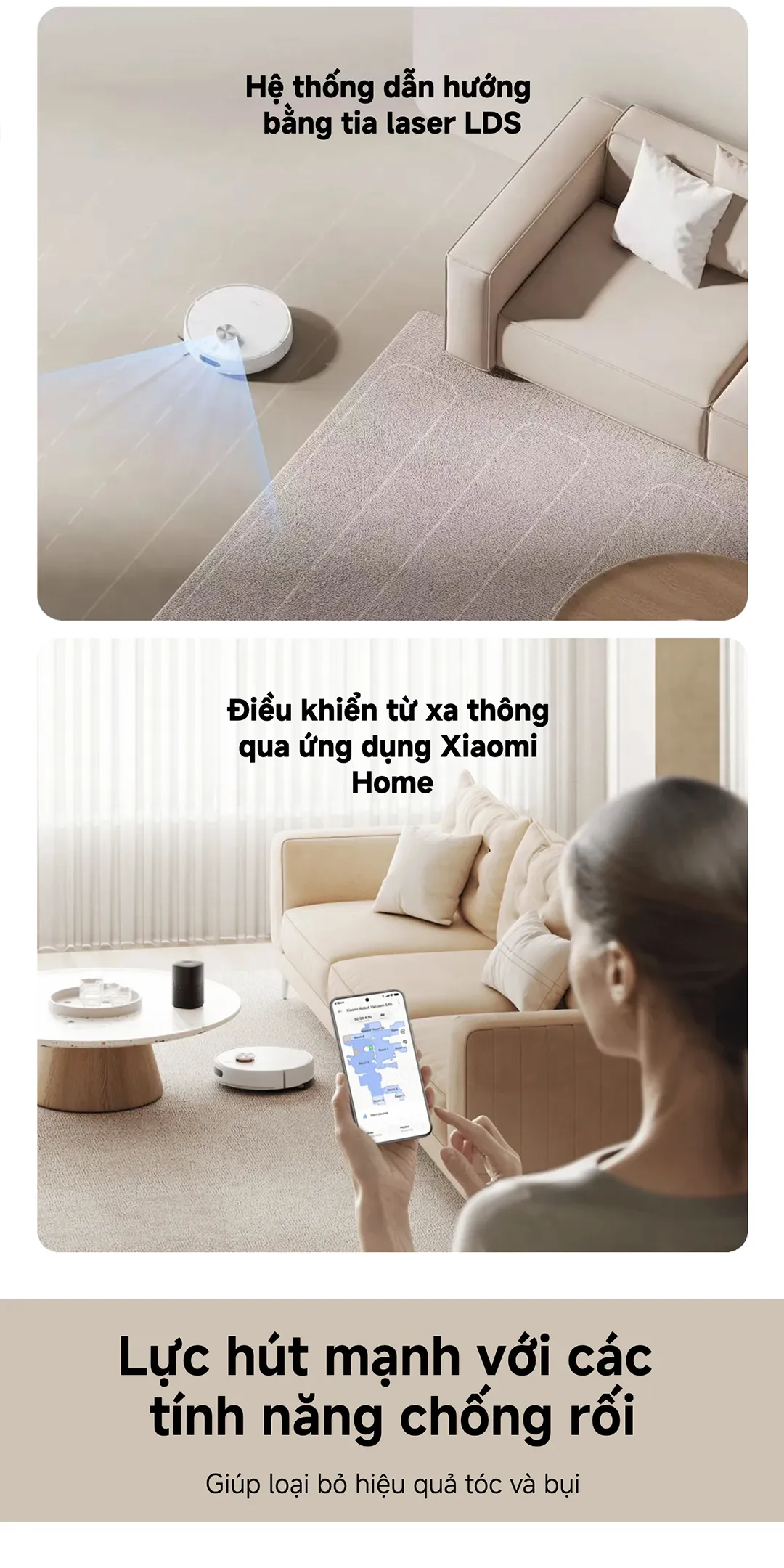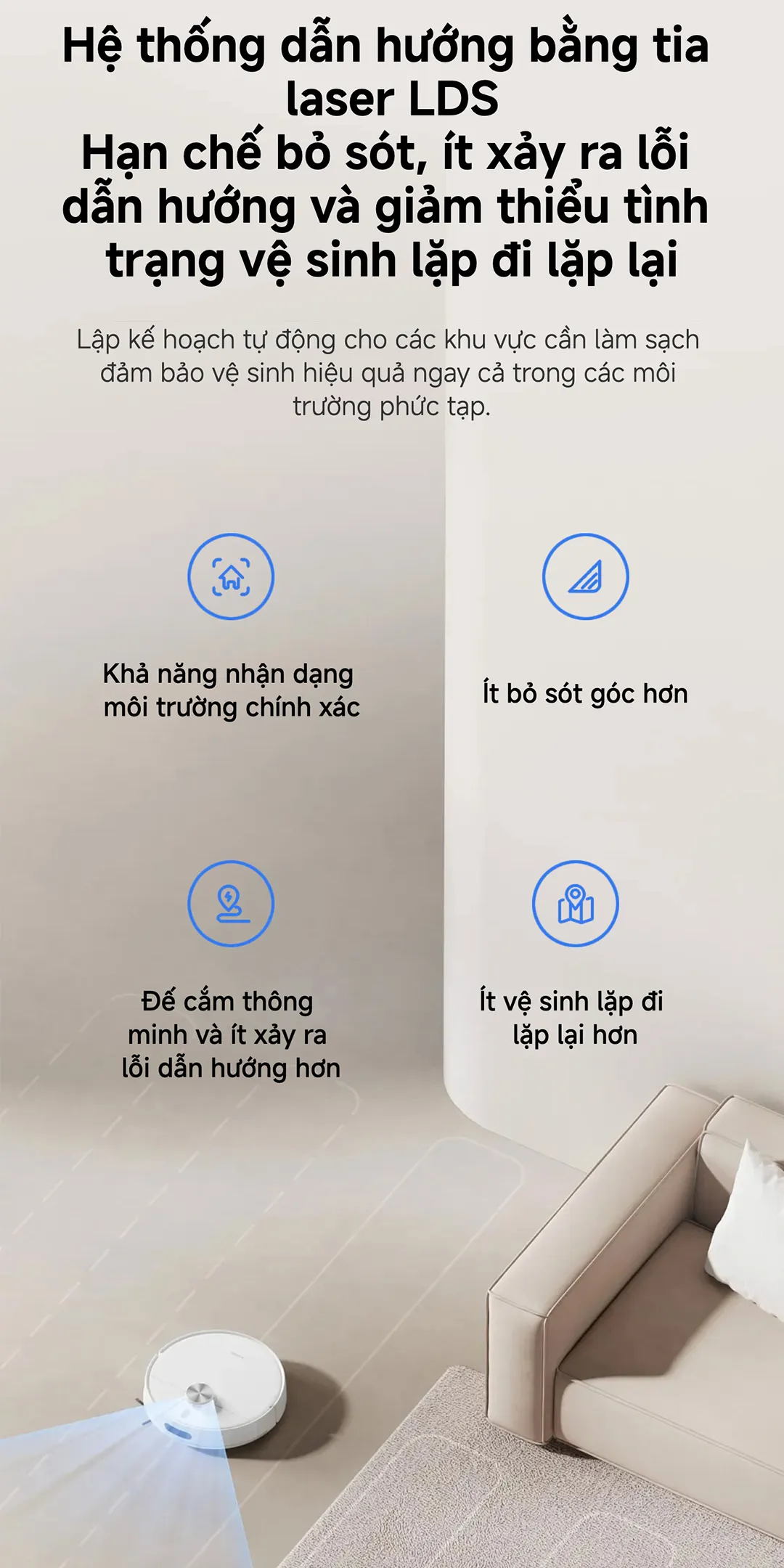 - Hệ thống dẫn hướng bằng tia laser LDS: Tạo bản đồ 3D góc rộng 360° cho mọi tầng và khu vực trong nhà.
