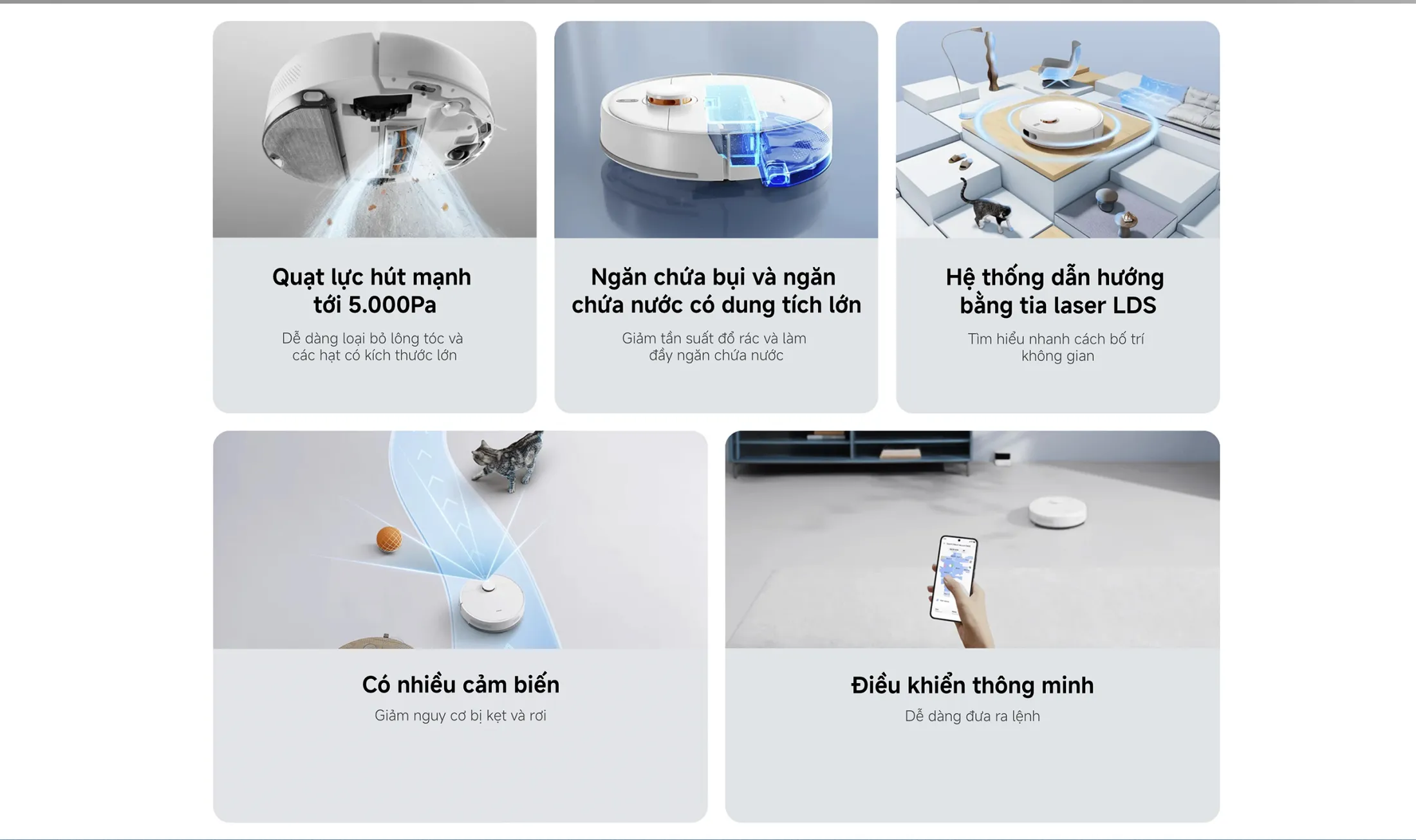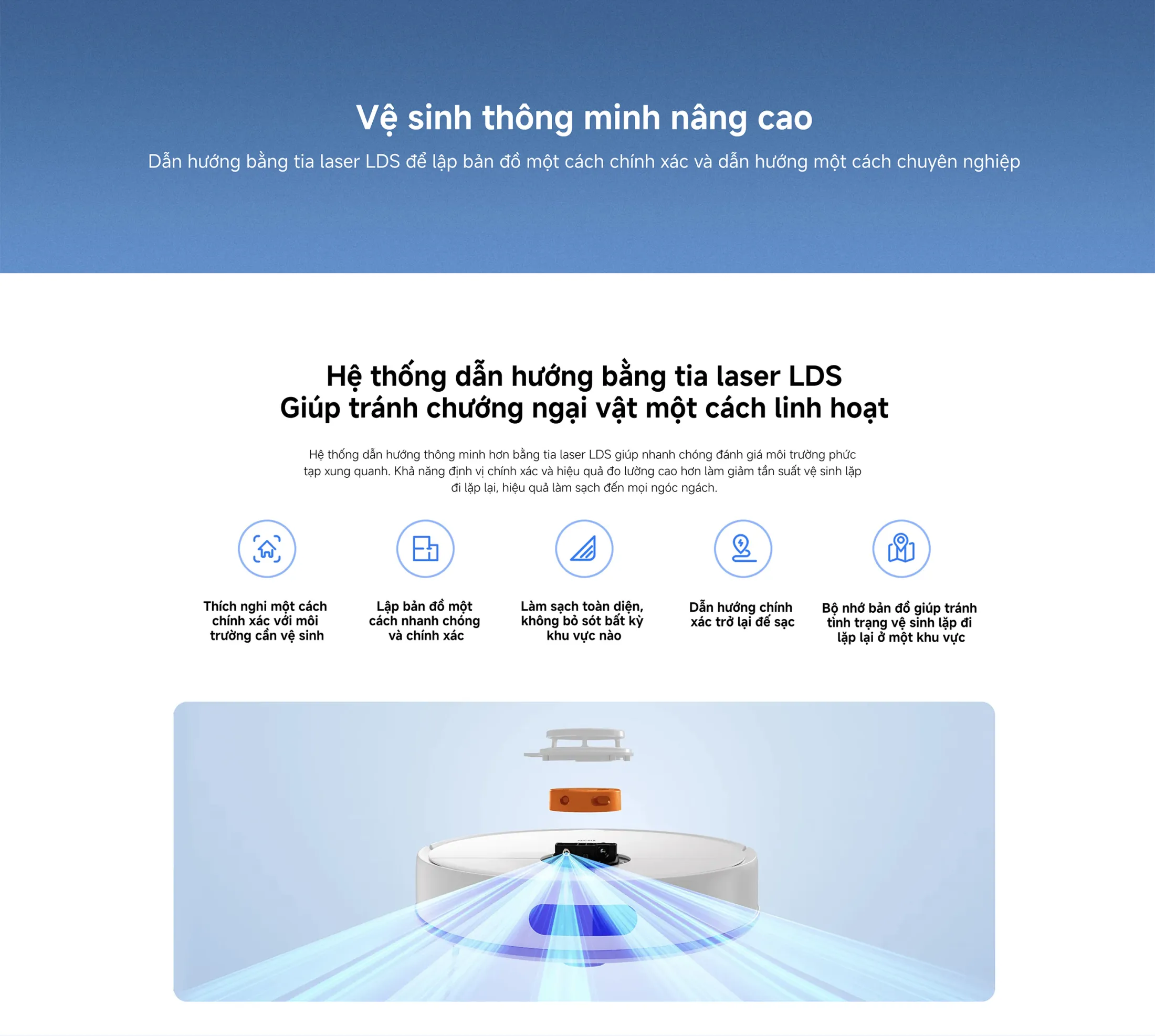 4. Hiệu quả sử dụng: công nghệ Lực hút 5.000PaHệ thống dẫn hướng laser đảm bảo sạch không bỏ sót.