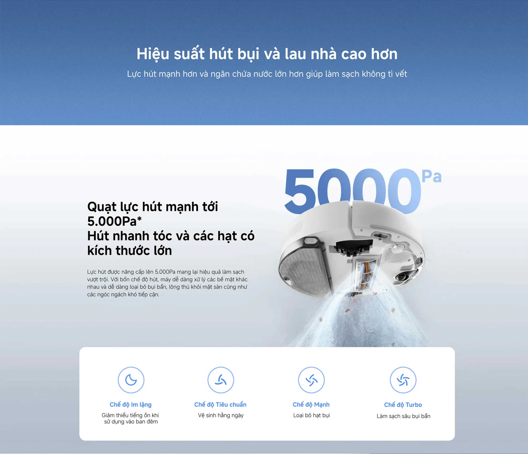 Khả năng hút với Lực hút 5.000Pa