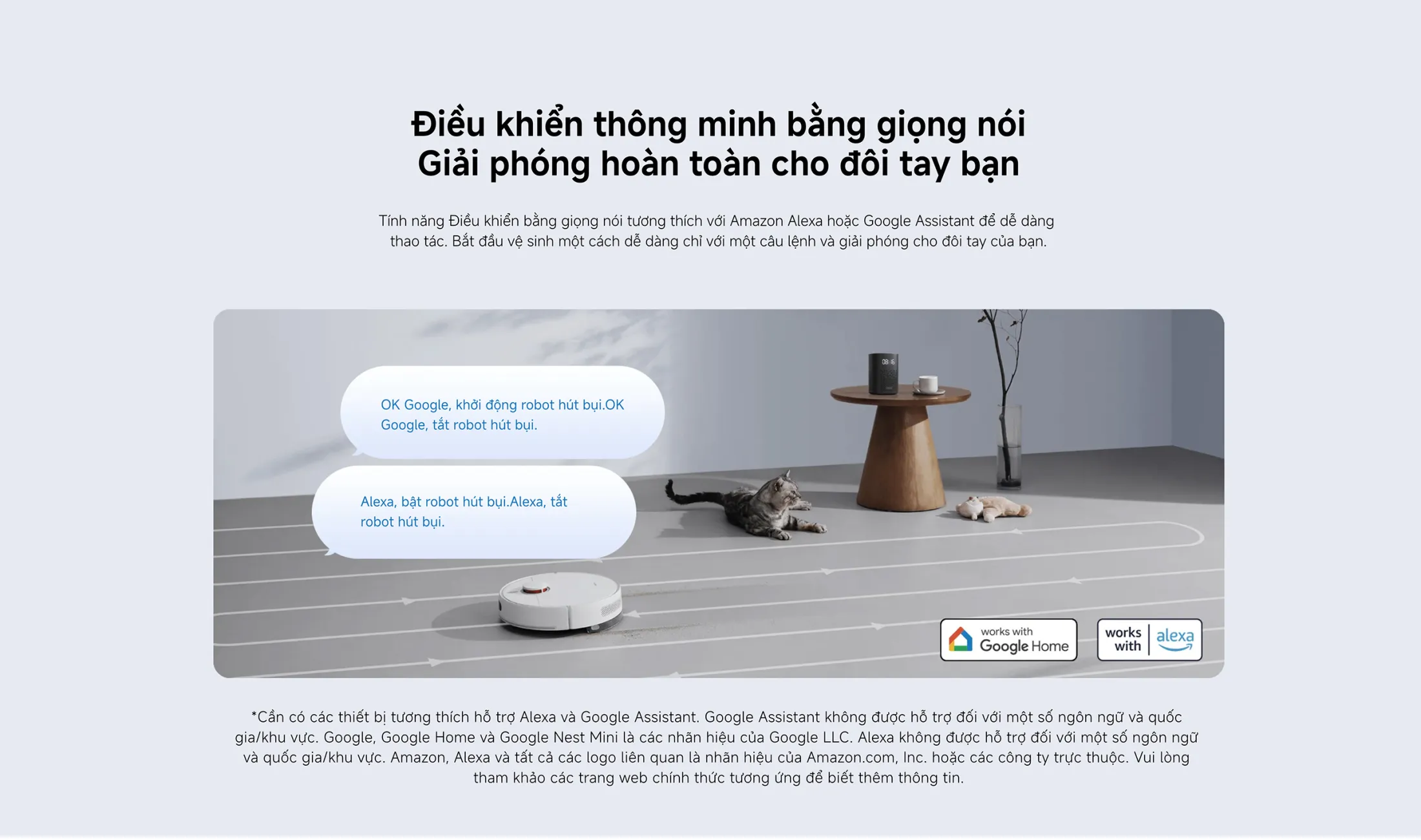 • Bắt đầu vệ sinh chỉ với một câu lệnh: “OK Google, khởi động robot hút bụi.”