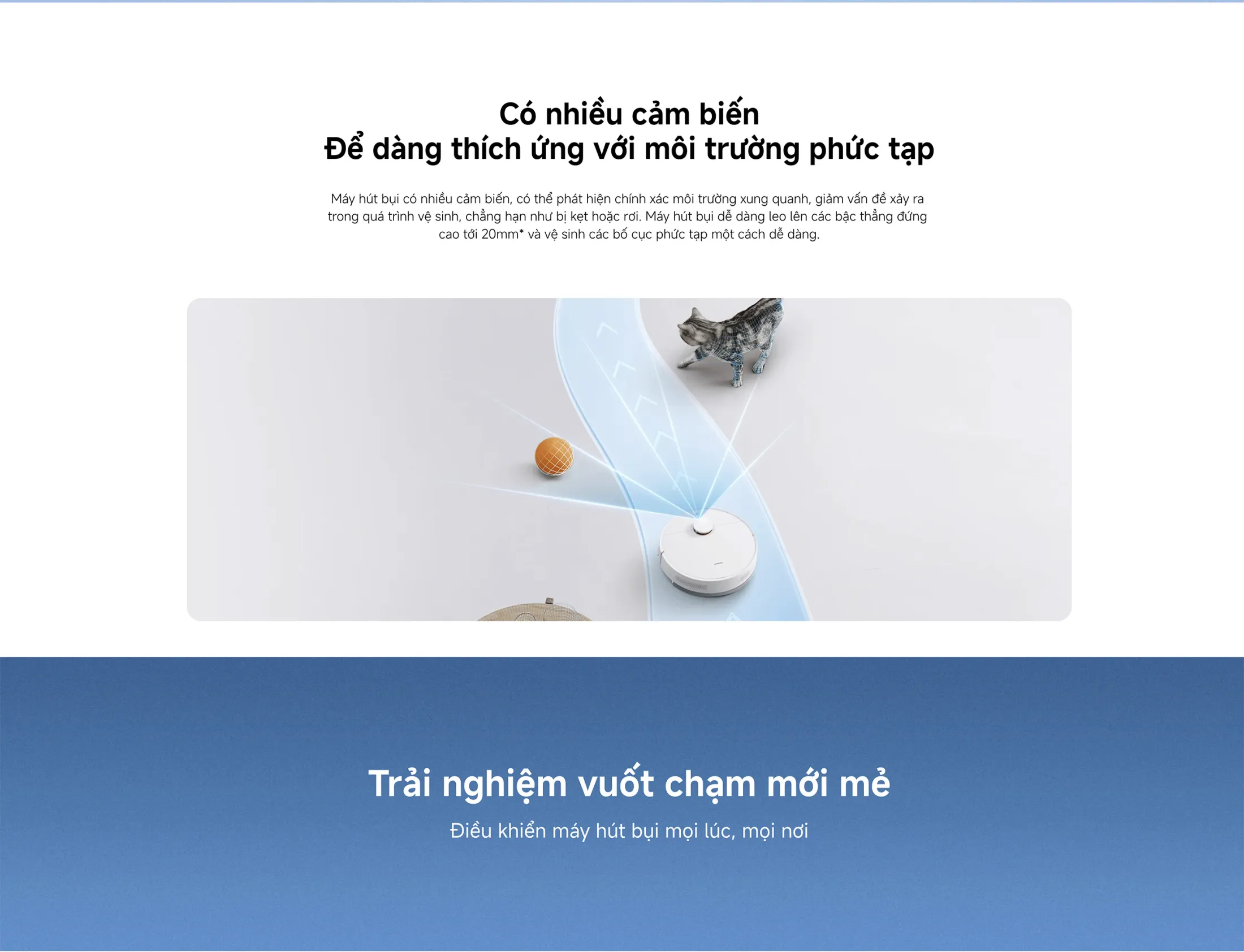 Cảm biến đa dạng – Trải nghiệm dọn sạch không bị kẹt hay rơi