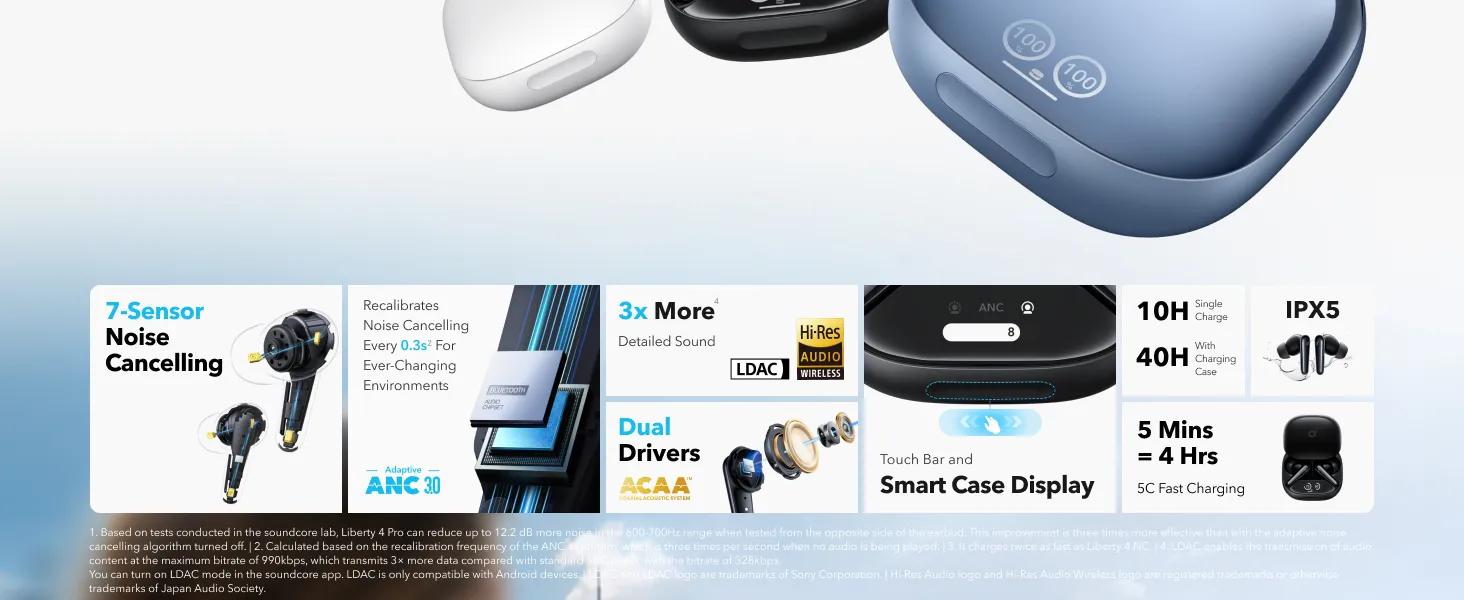 Nếu bạn đang tìm kiếm một chiếc Tai nghe không dây với công nghệ hủy tiếng ồn mạnh mẽ, âm thanh “studio-level”, và tính năng sạc nhanh, thì Soundcore Liberty 4 Pro chắc chắn sẽ đáp ứng mọi nhu cầu của bạn. Đặc biệt khi có thể điều chỉnh trực tiếp qua thanh cảm ứng, bạn không còn phải lo lắng về việc tìm kiếm các nút gợi ý hay cài đặt phức tạp.
