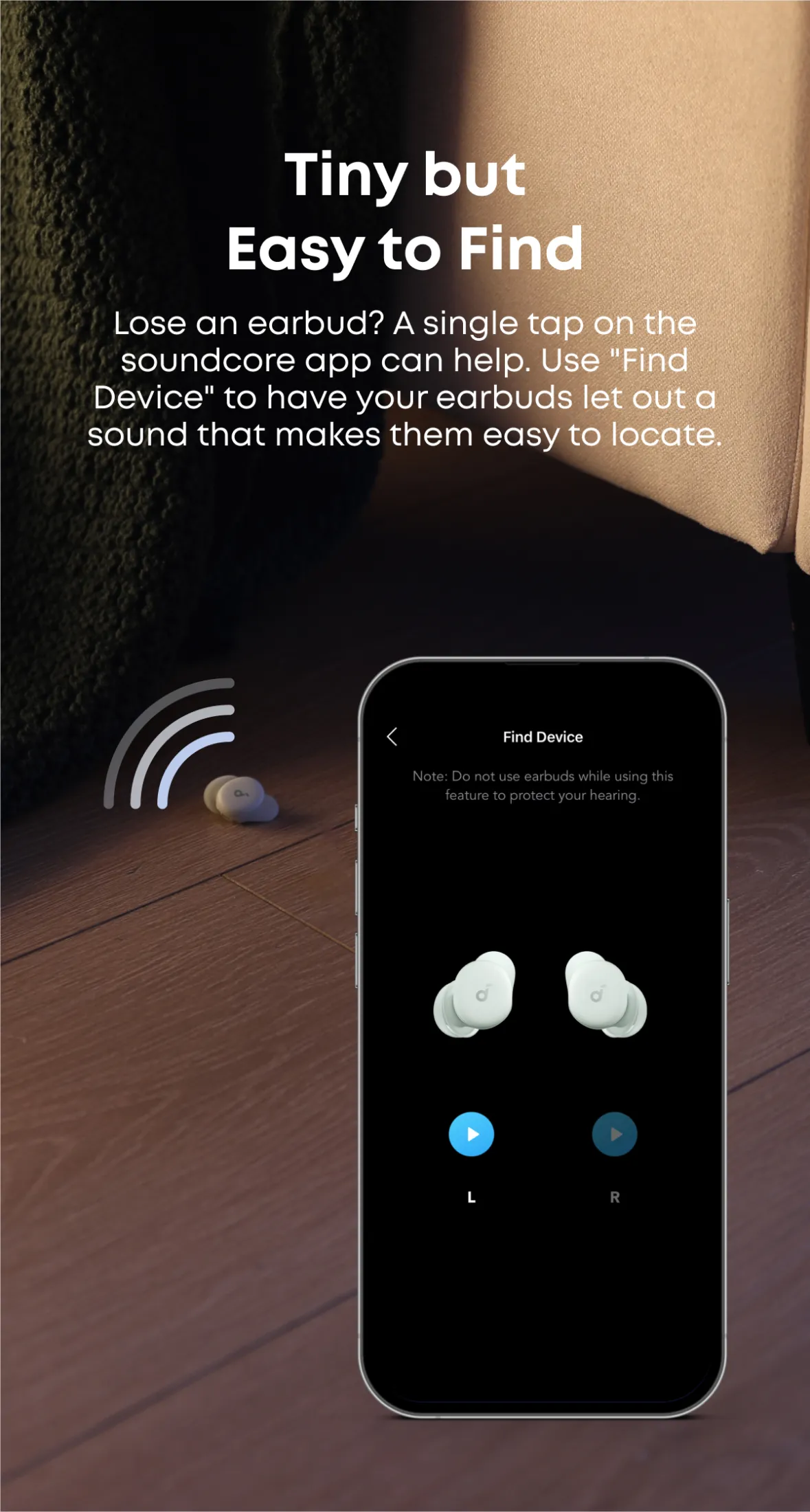 - Sử dụng tính năng “Find Device” khi mất một tai nghe: Nhấn vào app, tai nghe sẽ phát ra âm thanh giúp bạn tìm kiếm nhanh chóng.