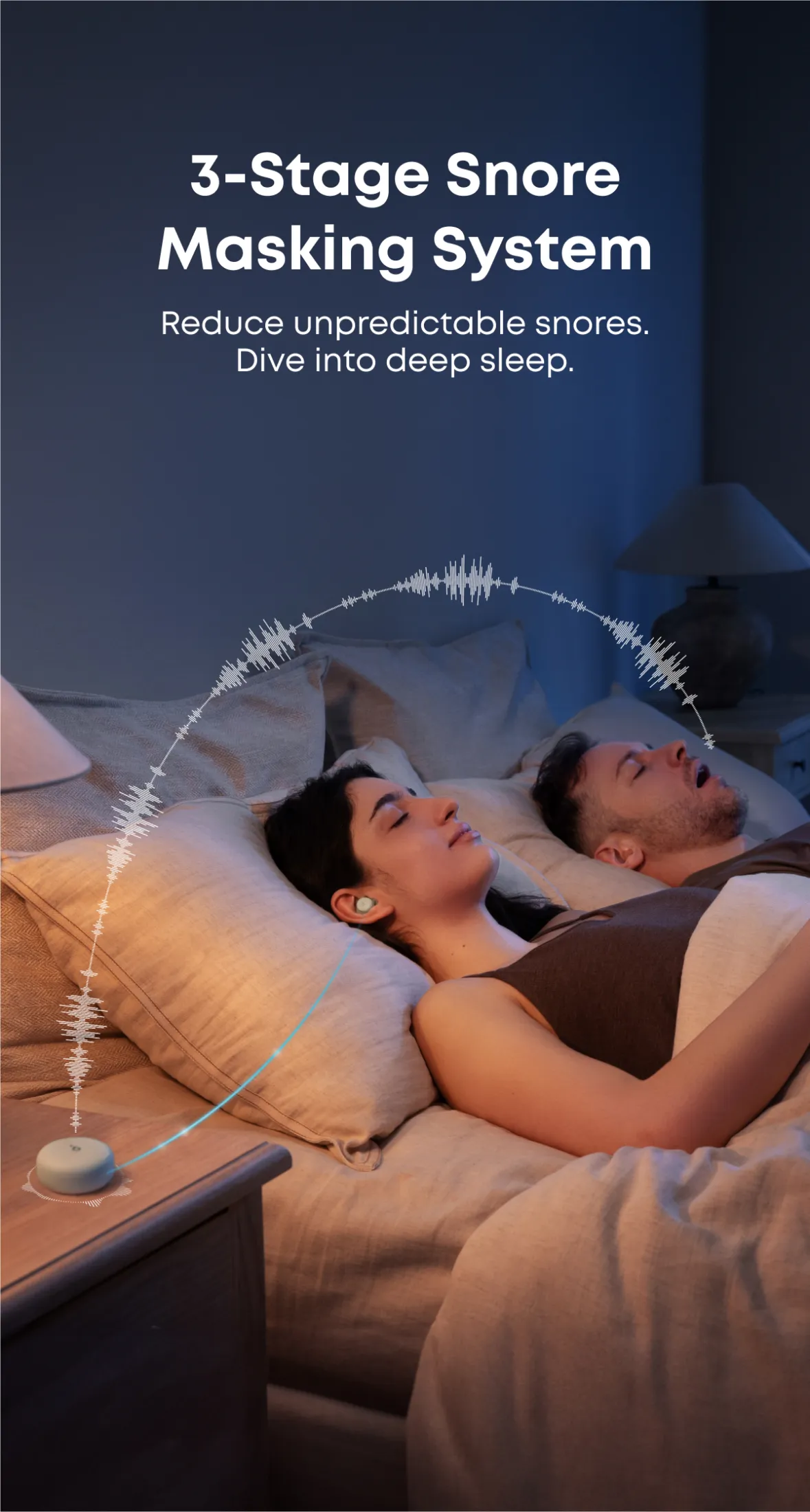 - Adaptive Snore-Masking Audio: Từ ứng dụng, bạn có thể bật âm thanh trắng nhẹ để che phủ tiếng ngáy ngay lập tức.