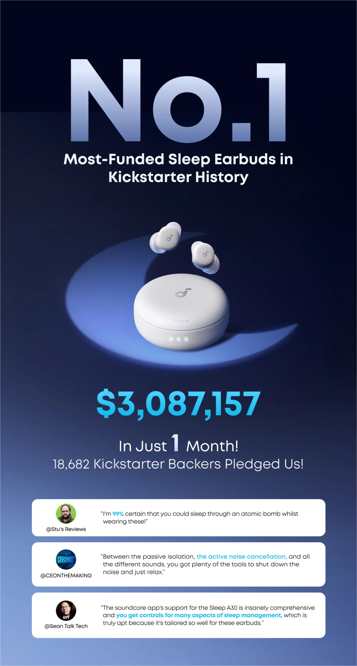 Trong thế giới hiện đại, giấc ngủ yên bình đang trở thành một nhu cầu thiết yếu mà không ít người gặp khó khăn trong việc bảo vệ. Soundcore Sleep A30, với công nghệ Active Noise Cancellation, tính năng Snore Masking và Binaural Beats, cung cấp giải pháp toàn diện để bạn có thể thư giãn và ngủ sâu hơn mỗi đêm. Thiết kế thoải mái, thời lượng pin ấn tượng cùng khả năng tùy chỉnh trải nghiệm cá nhân khiến sản phẩm trở thành một lựa chọn đáng tin cậy cho những ai tìm kiếm một giấc ngủ chất lượng.