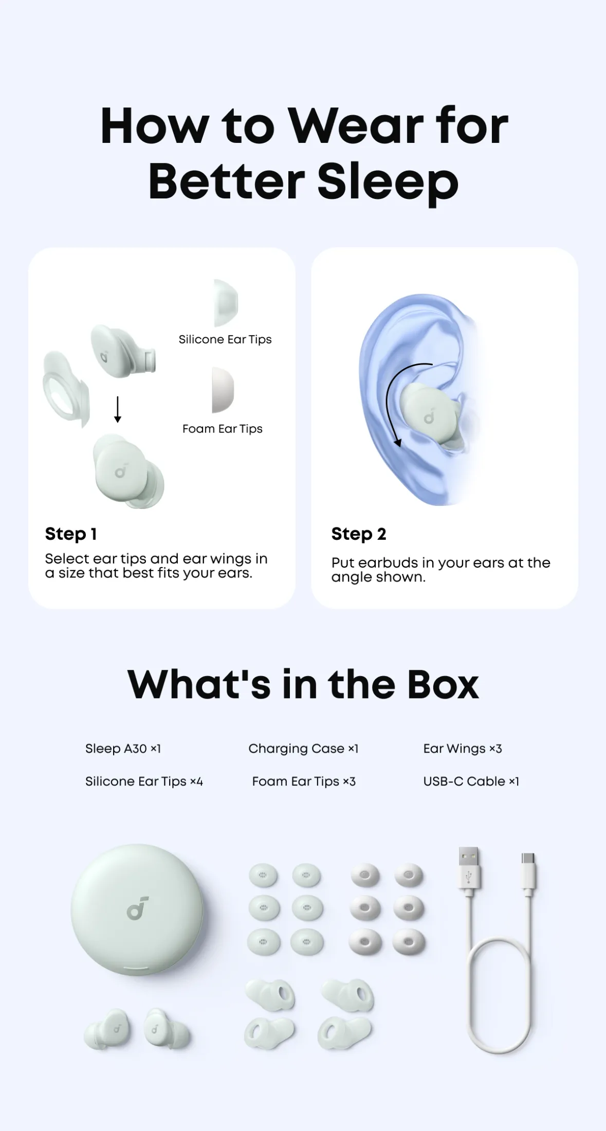 Đối với những người thường nằm nghiêng, Soundcore Sleep A30 được thiết kế đặc biệt: