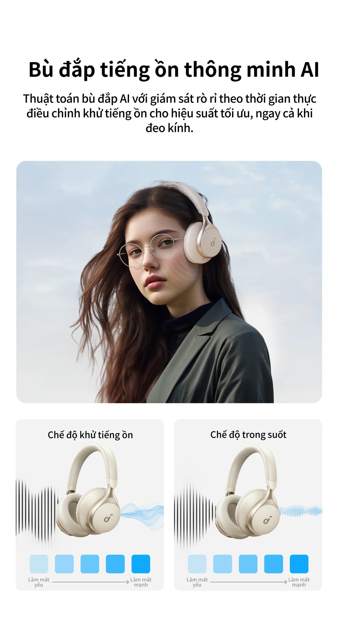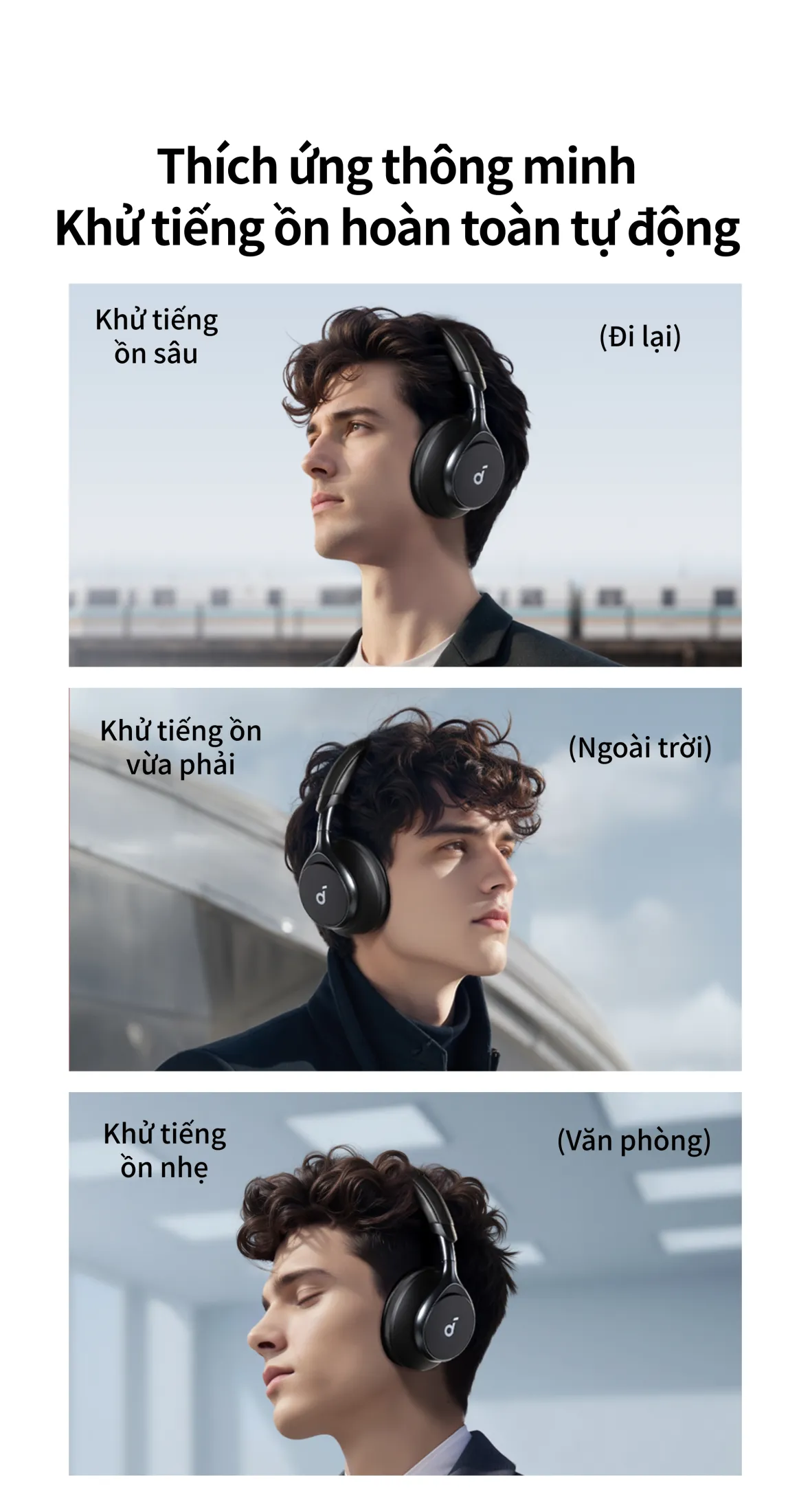 Điểm mạnh là khả năng tự động điều chỉnh mức khử âm dựa trên môi trường. Ví dụ: nếu bạn đang ở trong tàu hỏa ồn ào, hệ thống sẽ tăng cường khử tiếng ồn, trong khi ở văn phòng có thể giảm nhẹ để không làm mất cảm giác thực tế.