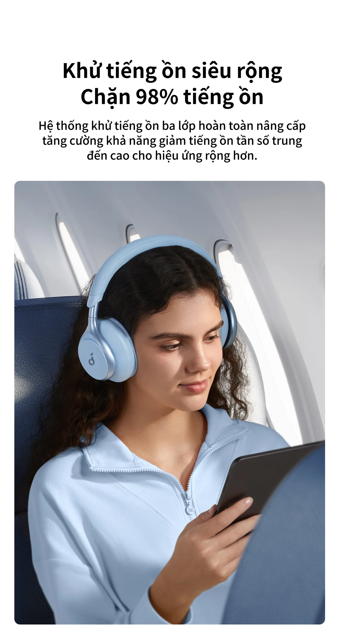 - Bộ pin mạnh mẽ: 40 giờ chơi nhạc với ANC, 55 giờ không ANC – đủ cho các chuyến đi dài.