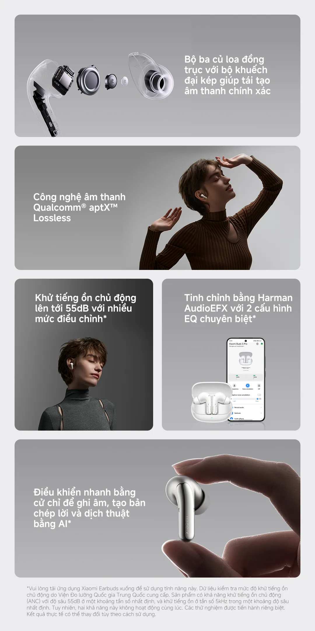 Tai nghe Xiaomi Buds 5 Pro WIFI & Bluetooth | Bộ ba củ loa đồng trục với bộ khuếch đại kép giúp tái tạo âm thanh chính xác | Công nghệ âm thanh Qualcomm® aptX™ Lossless |