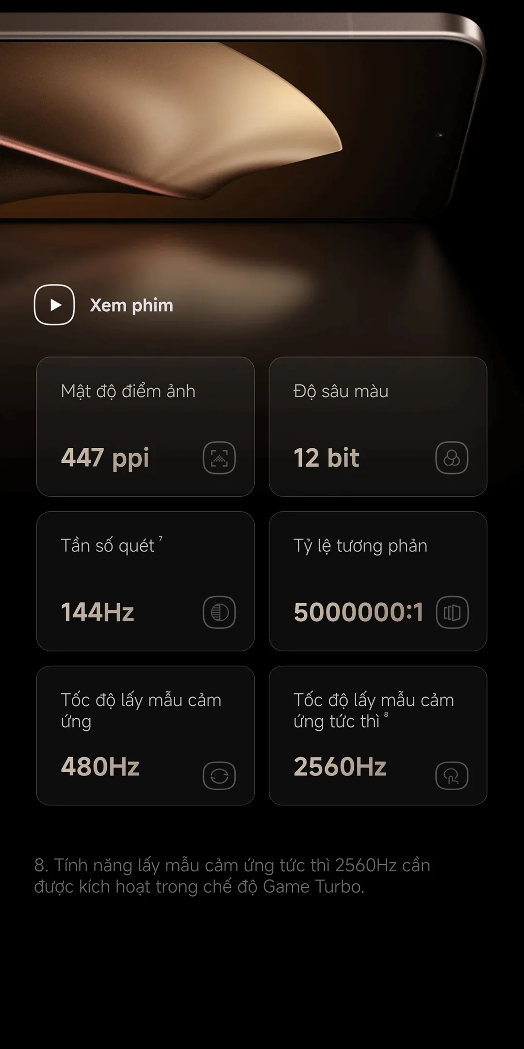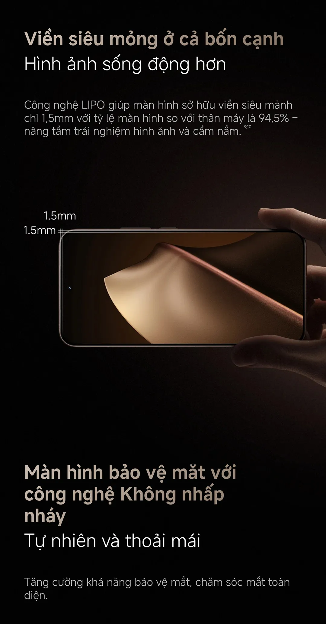 • Viền siêu mỏng 1.5 mm, tỷ lệ màn hình/thiết bị 94.5%.