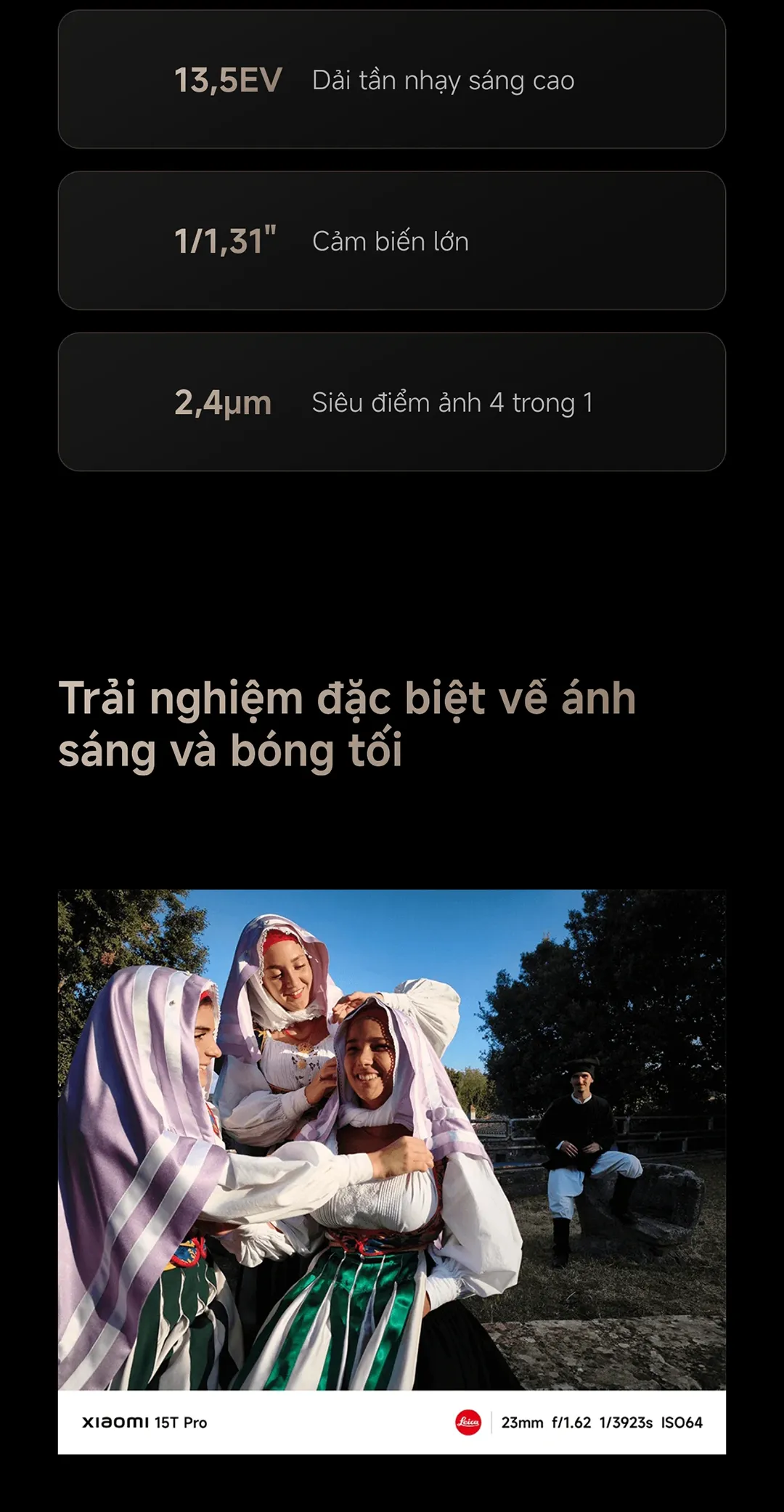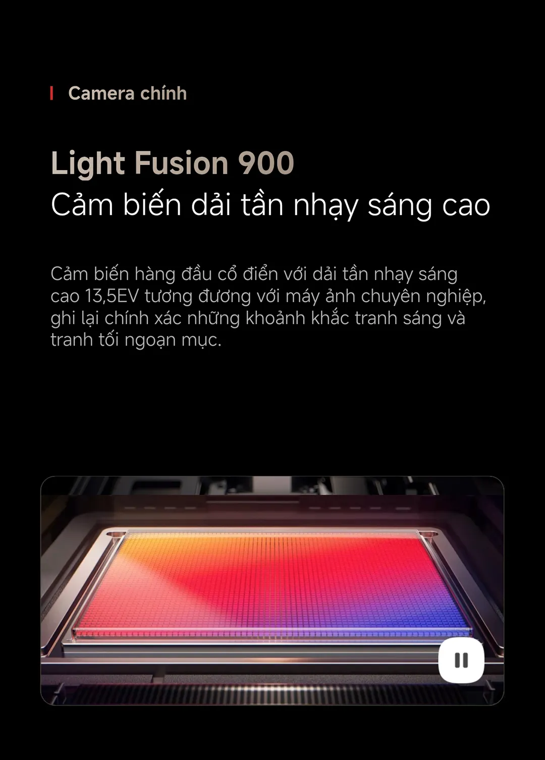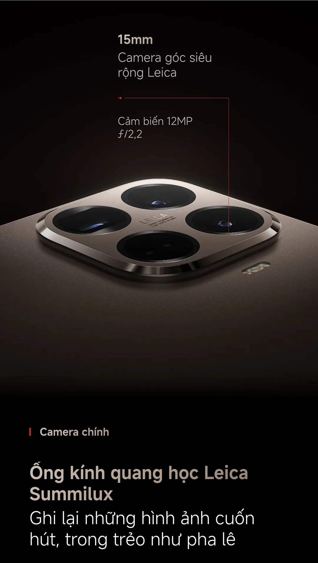 2. Camera chính – Ống kính Leica Summilux: Khẩu độ lớn f/1.62, cảm biến Light Fusion 900 (13,5 EV), ghi lại ánh sáng tốt trong mọi điều kiện.