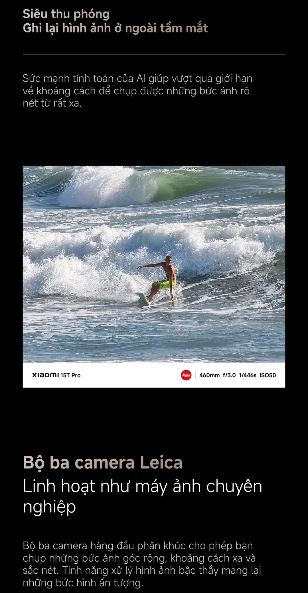Điểm mạnh thực sự của Xiaomi 15T Pro là hệ thống camera được hợp tác cùng Leica. Bộ ba camera gồm: