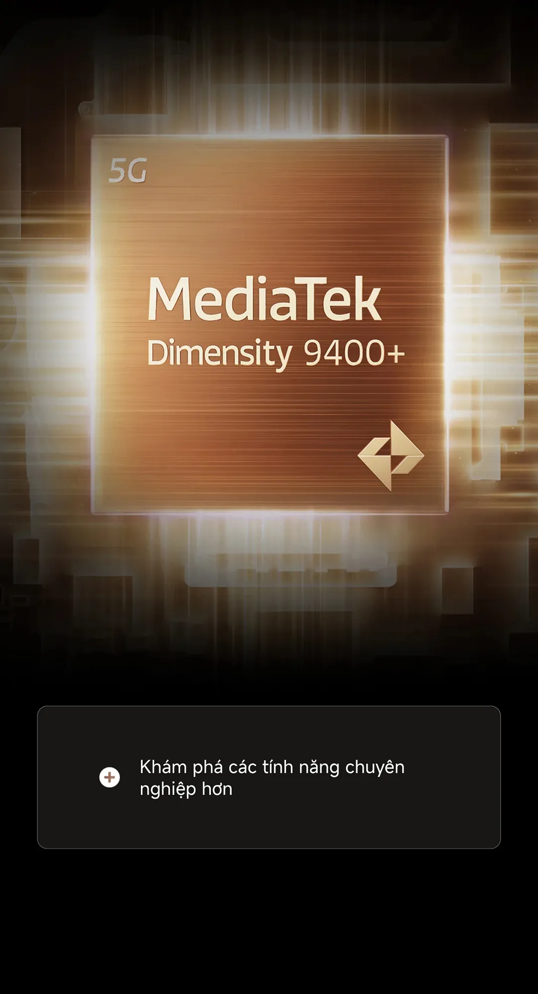 Bộ xử lý Dimensity 9400+ được sản xuất công nghệ 3 nm, mang lại hiệu suất vượt trội cho các tác vụ nặng như chơi game AAA hay xử lý video 4K.