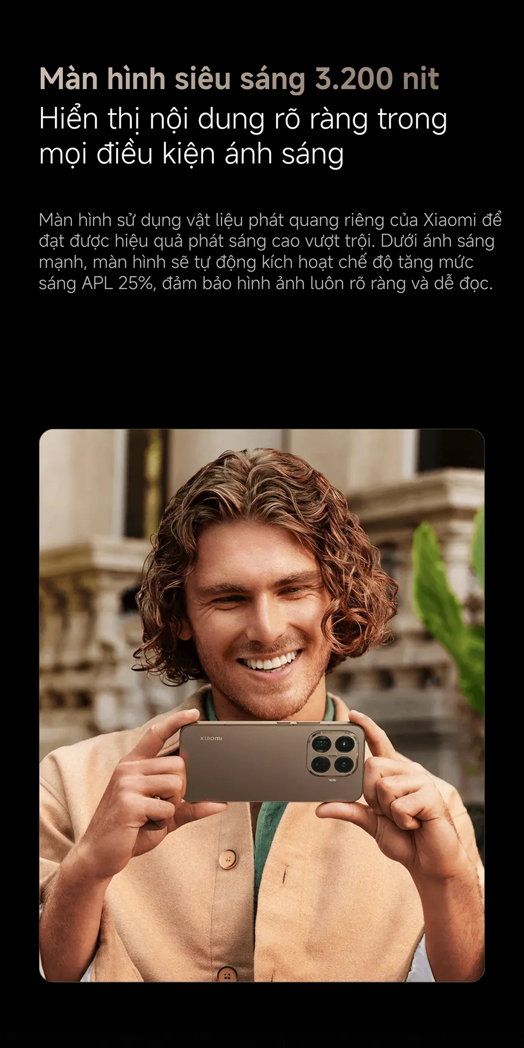 • Độ sáng tối đa 3200 nit – màn hình vẫn rõ ràng ngay cả dưới ánh nắng mặt trời.