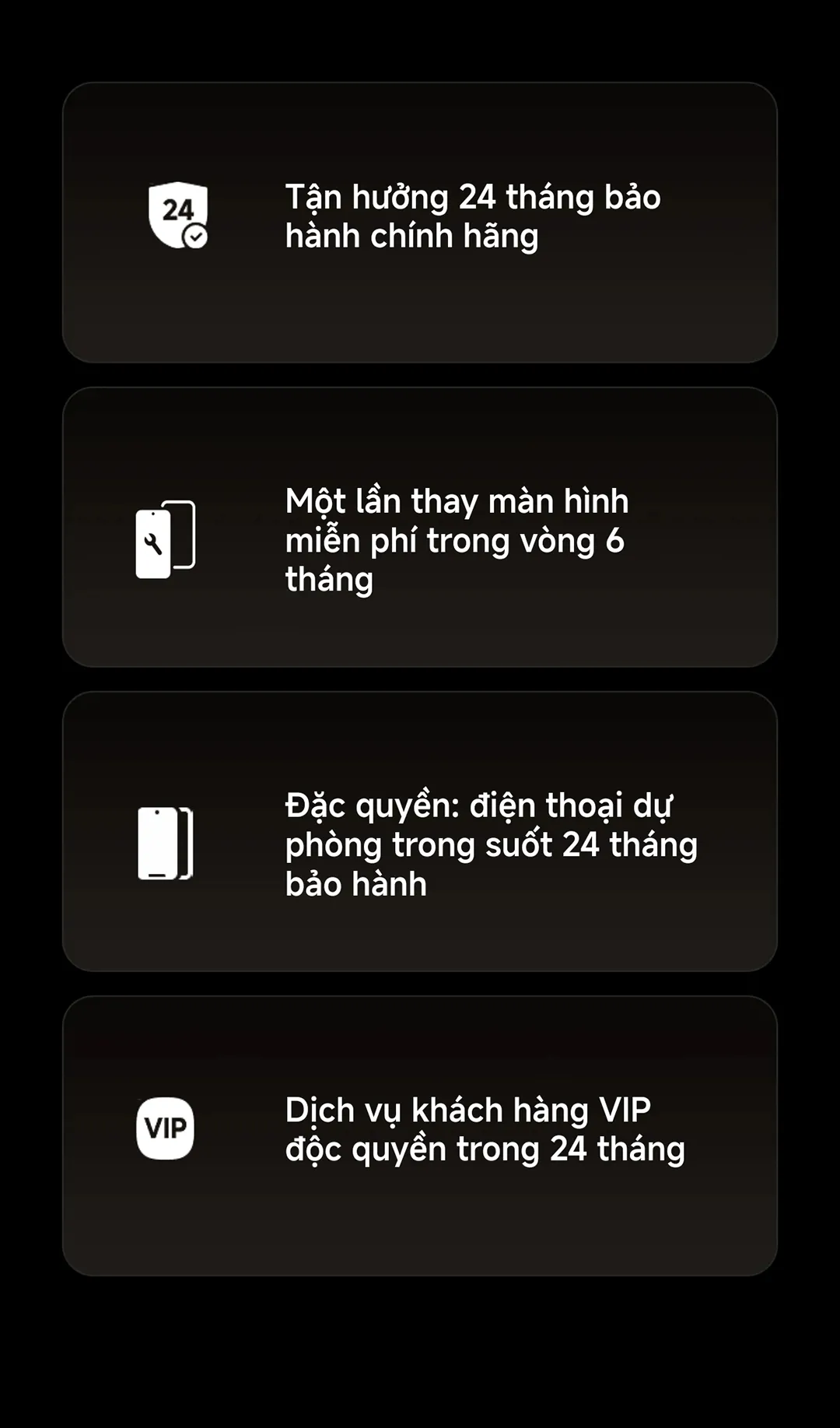 • Dịch vụ khách hàng VIP độc quyền trong 24 tháng.
