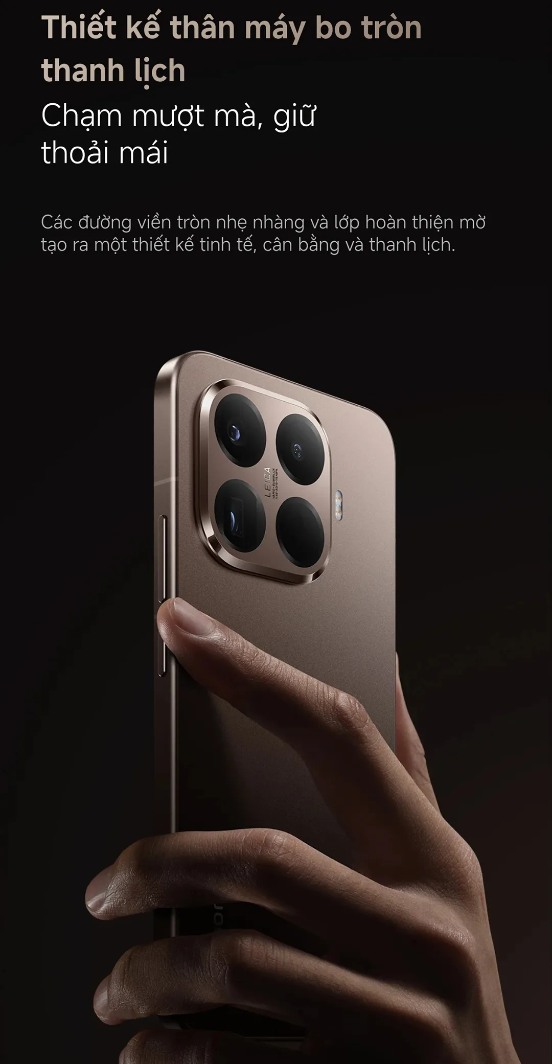 • Thân máy bo tròn: Màu sắc “Vàng Mocha” làm tăng cảm giác êm dịu, mượt mà khi cầm nắm.