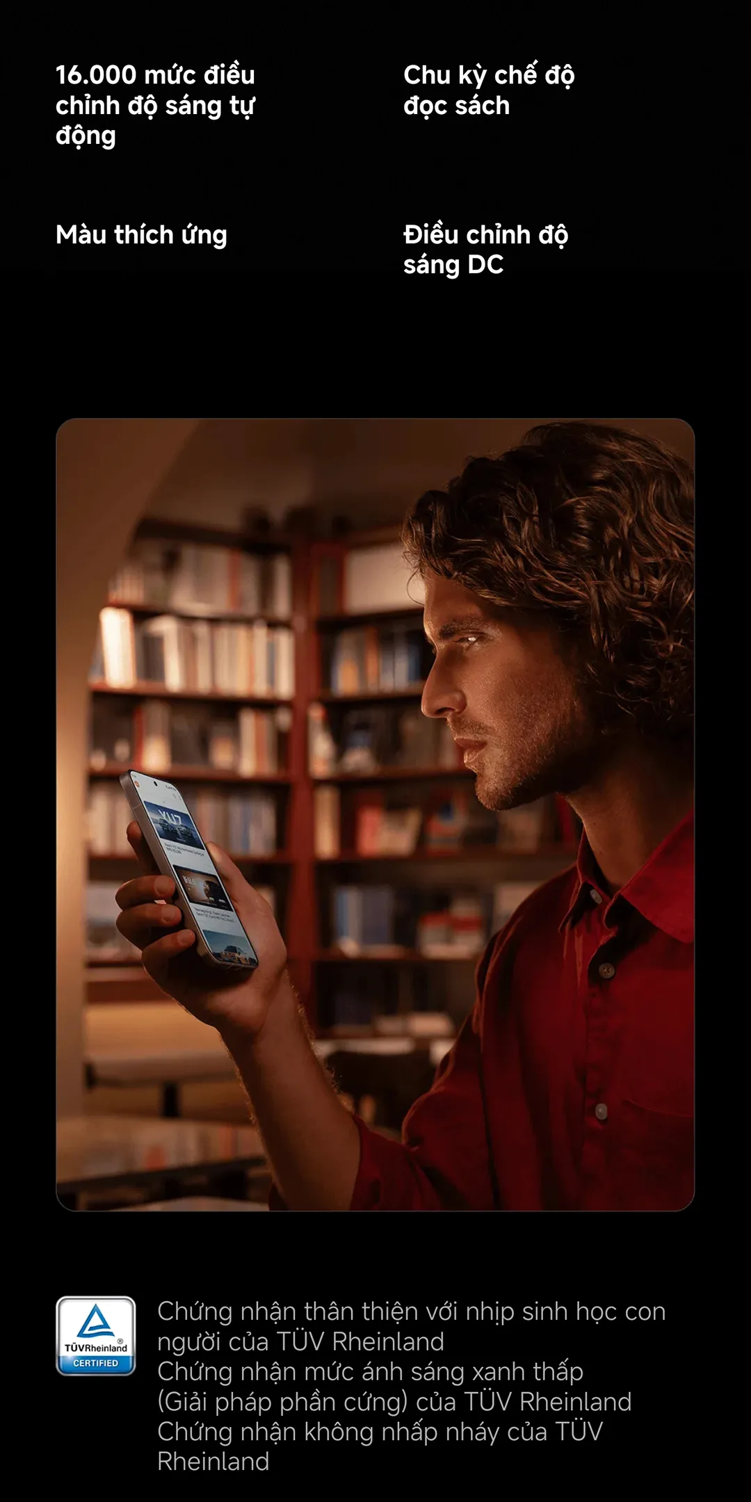 • Công nghệ Bảo vệ mắt không nhấp nháy: Tự động điều chỉnh độ sáng và giảm ánh xanh, hỗ trợ người dùng trong thời gian dài sử dụng.